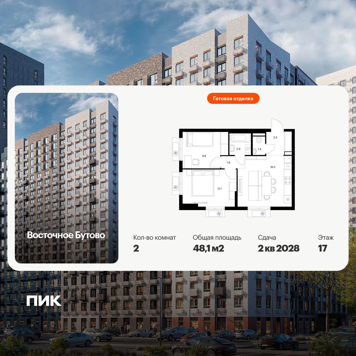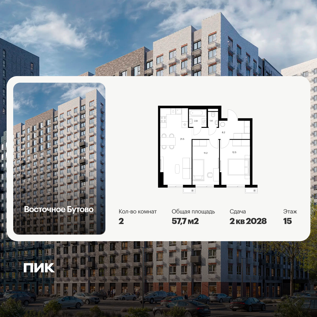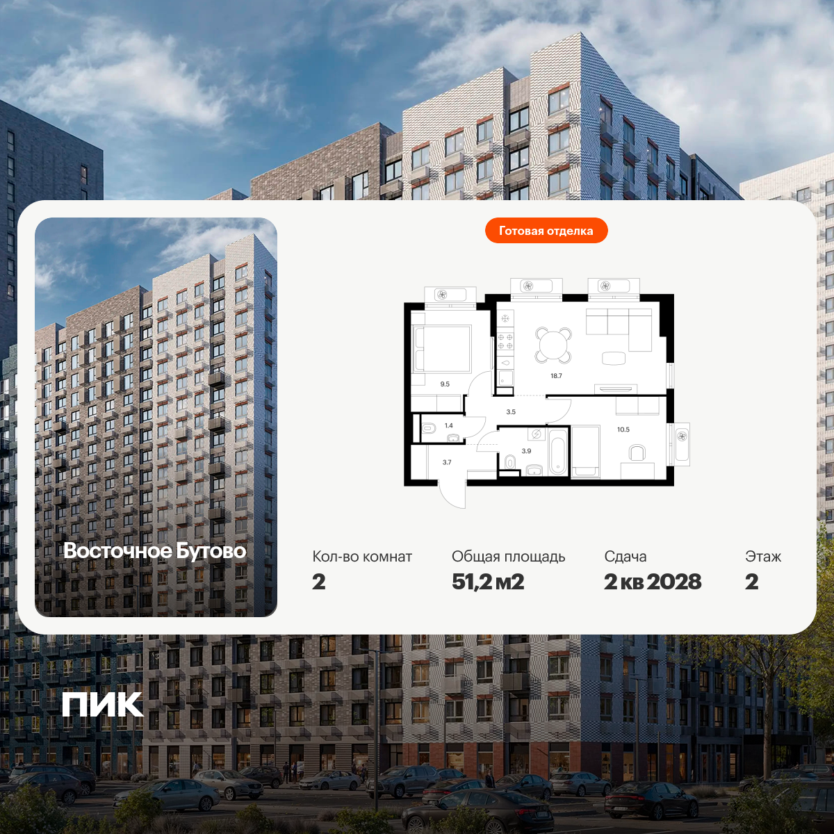 «Восточное Бутово» — квартал ПИК с готовой инфраструктурой в зелёном районе Московской области, по соседству с Бутовским лесопарком. Дорога до станций метро и МЦД «Бульвар Дмитрия Донского» займёт 20 минут на автомобиле. Доехать до МКАД можно всего за 10 минут.