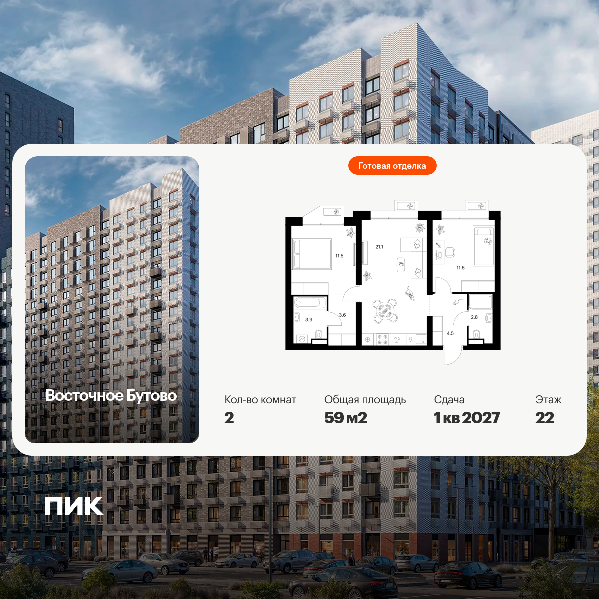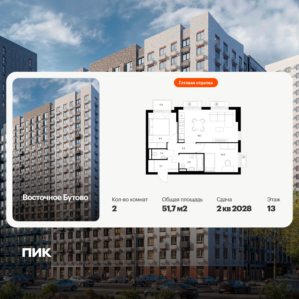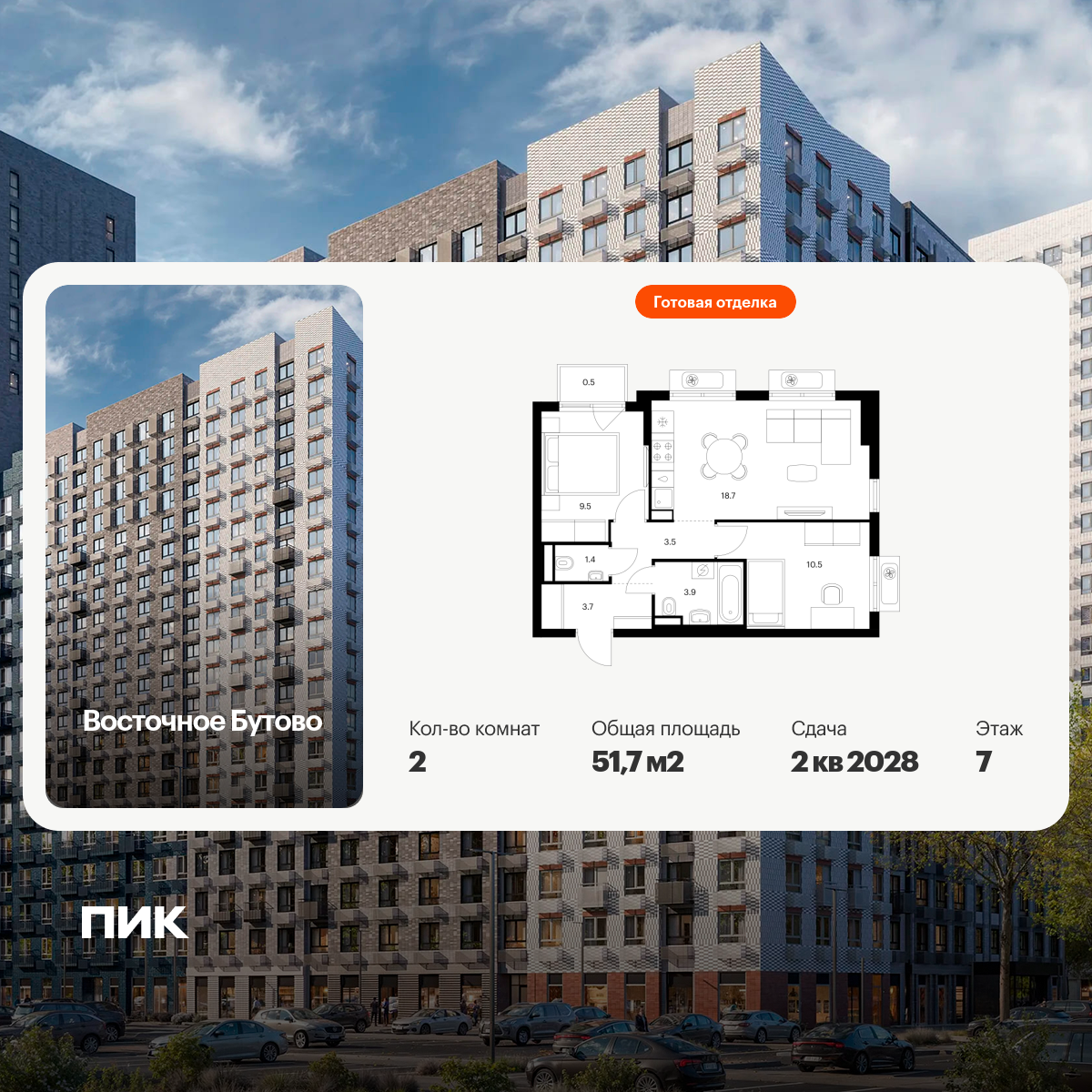 «Восточное Бутово» — квартал ПИК с готовой инфраструктурой в зелёном районе Московской области, по соседству с Бутовским лесопарком. Дорога до станций метро и МЦД «Бульвар Дмитрия Донского» займёт 20 минут на автомобиле. Доехать до МКАД можно всего за 10 минут.