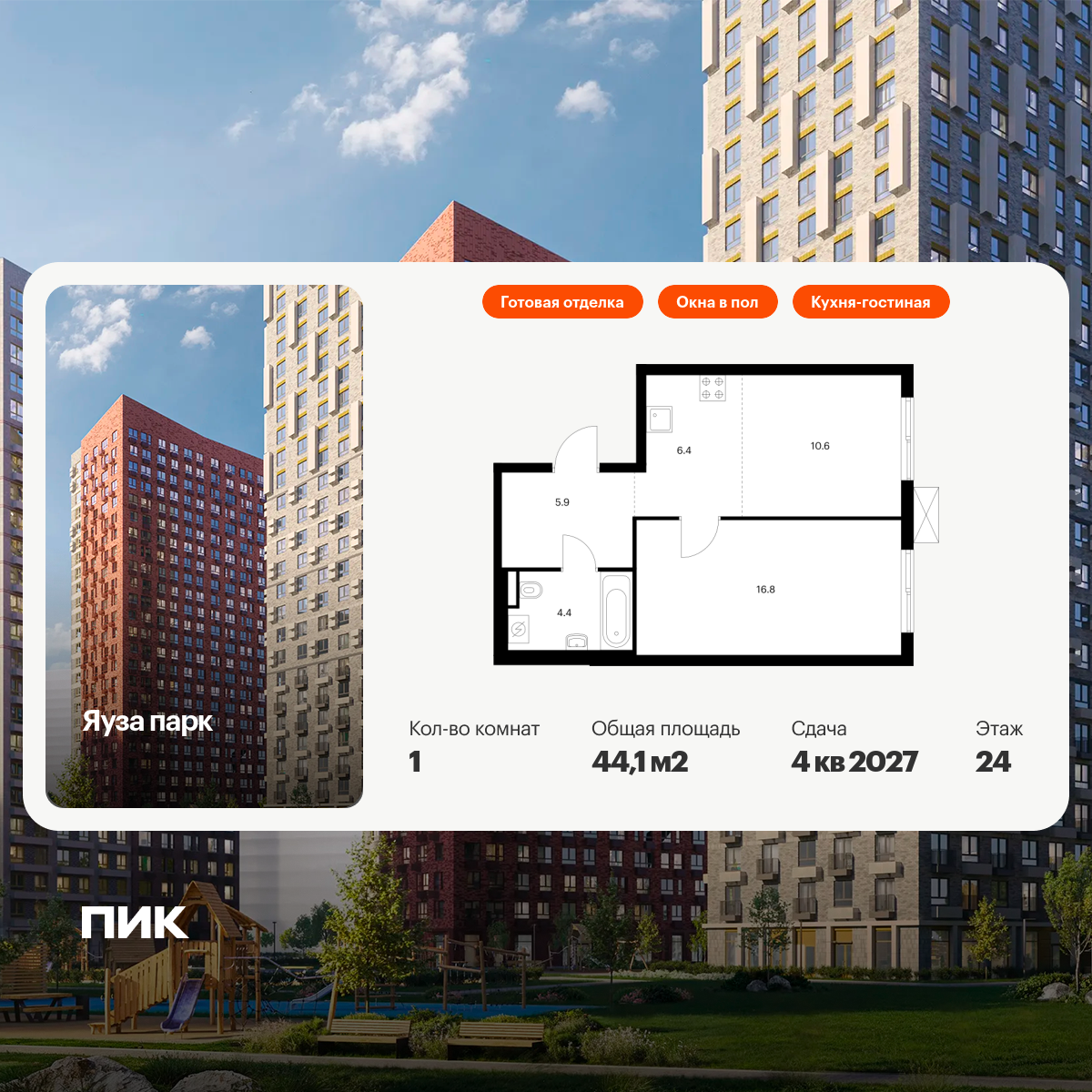Однокомнатные квартиры в ЖК Яуза Парк