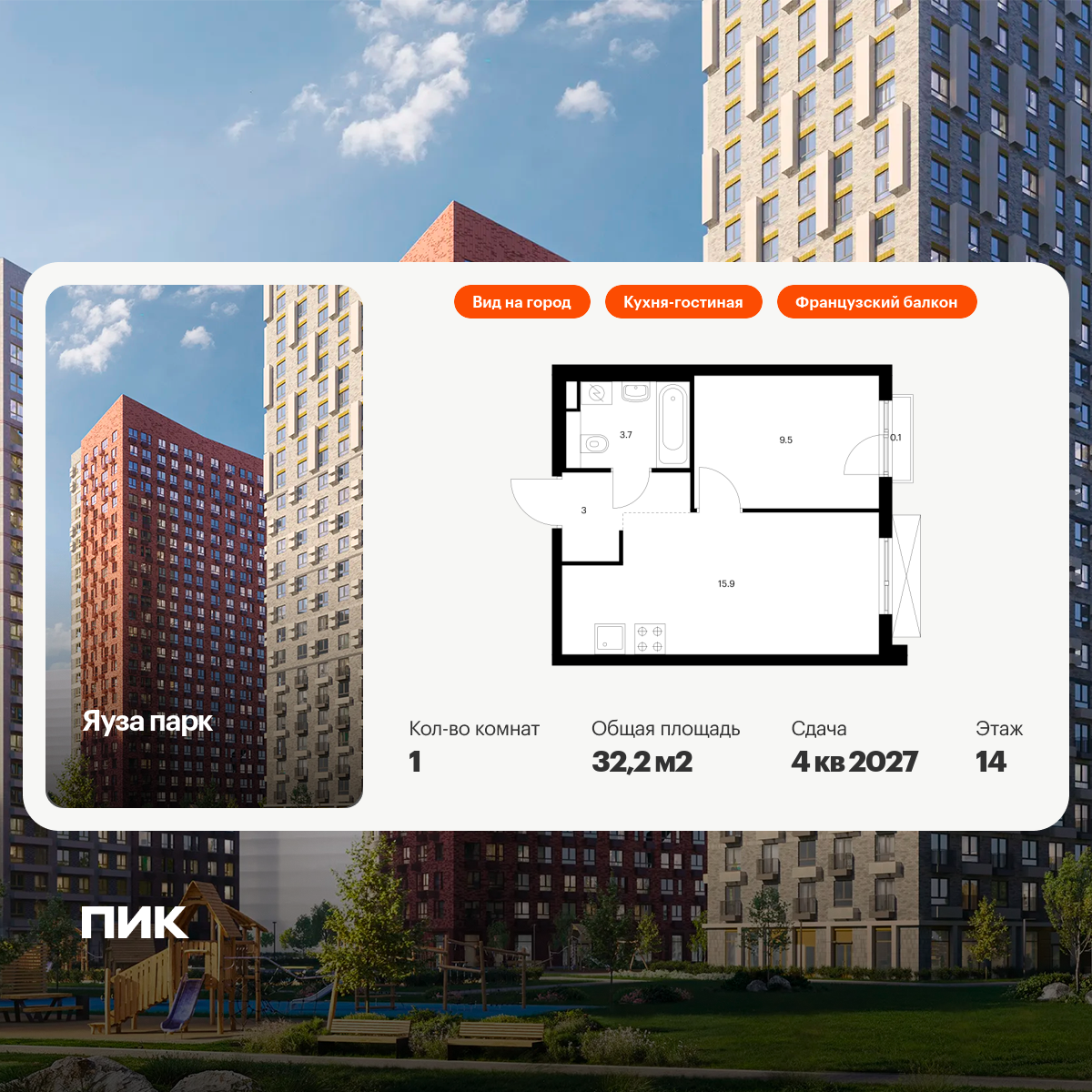 Однокомнатные квартиры в ЖК Яуза Парк