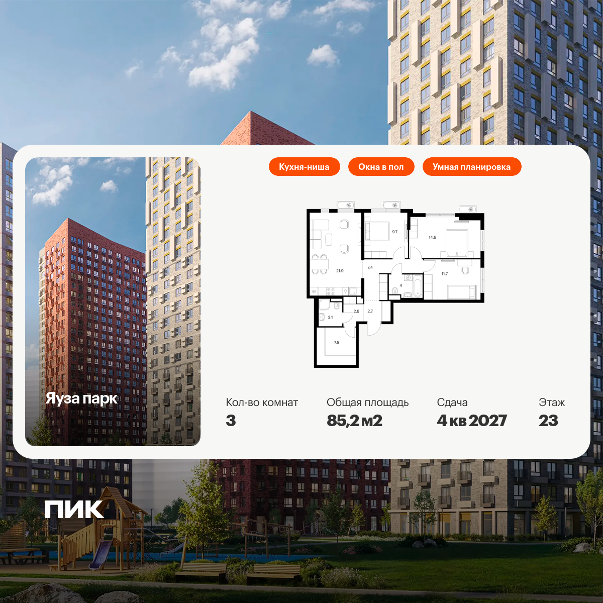 Трехкомнатные квартиры в ЖК Яуза Парк