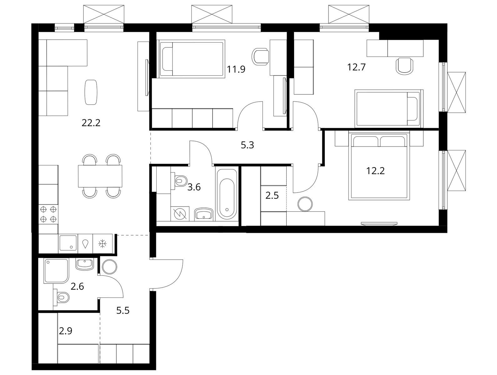 3-комнатная (85.5м2)