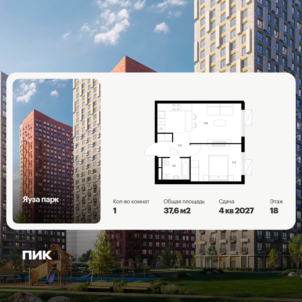 Евро однокомнатные квартиры в ЖК Яуза Парк