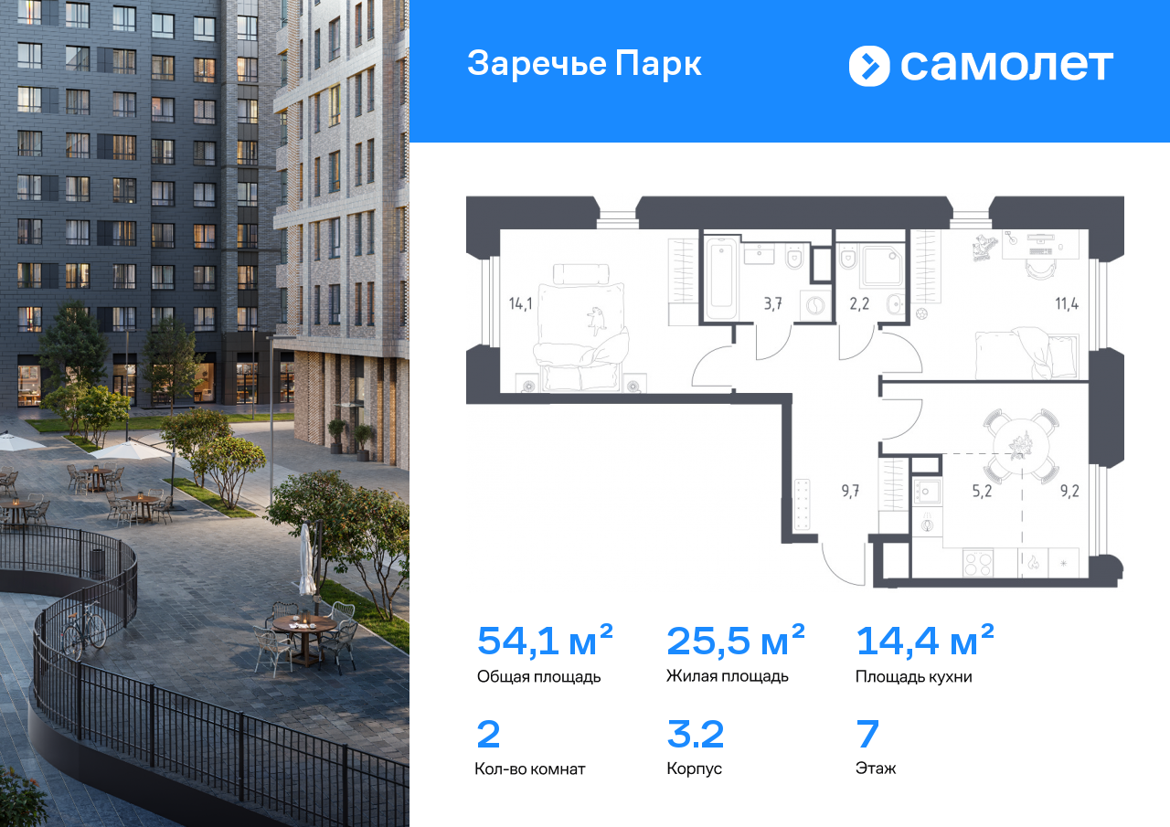 Двухкомнатные квартиры в ЖК «Заречье Парк»