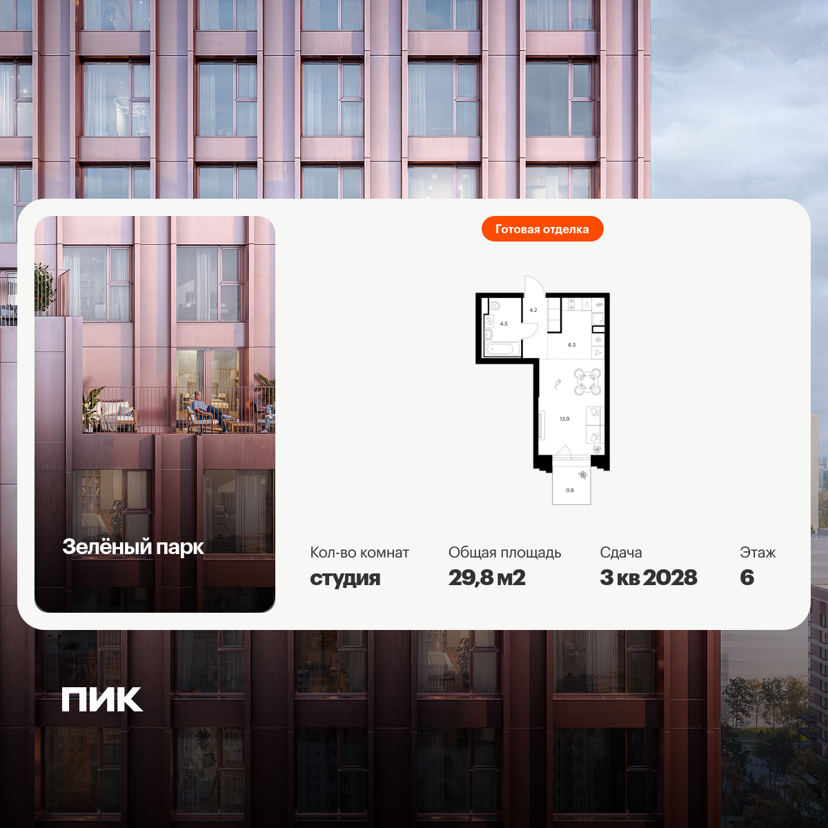 Квартиры-студии в Зелёный парк