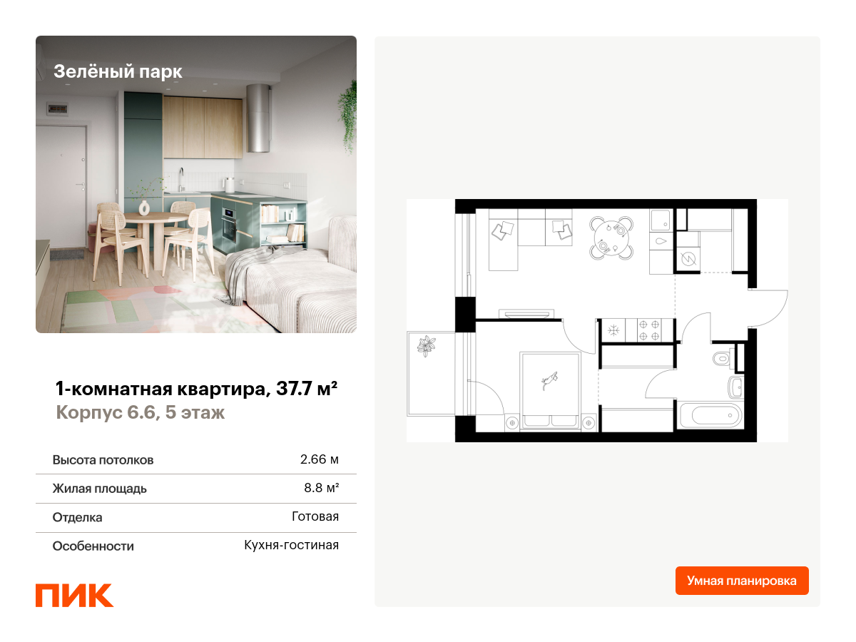 Однокомнатные квартиры в Зелёный парк - страница 2