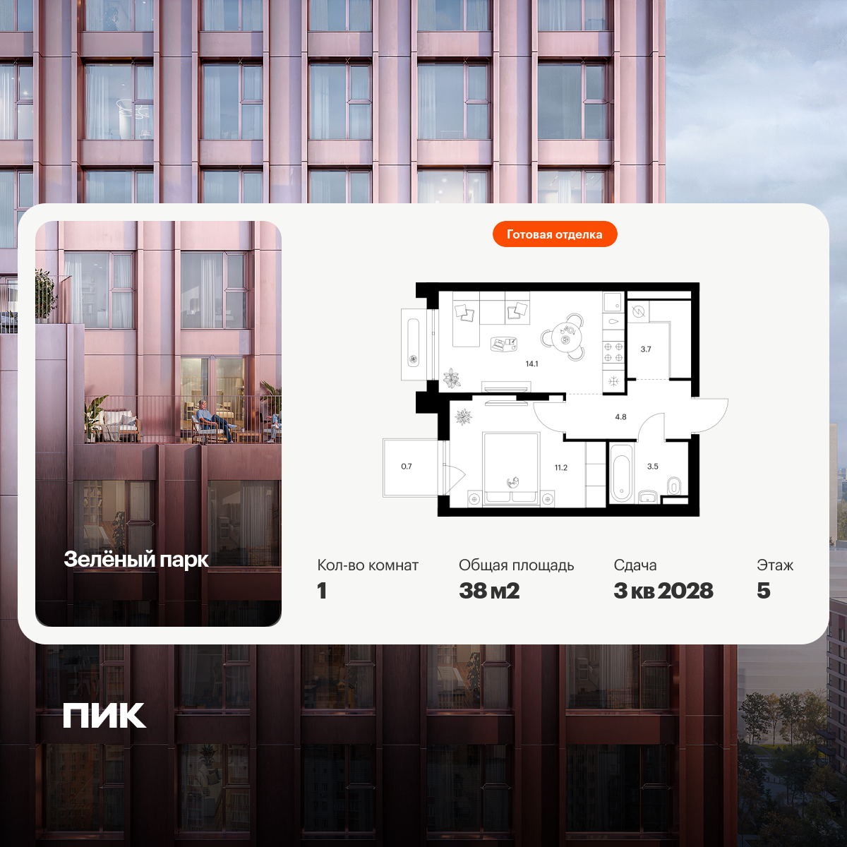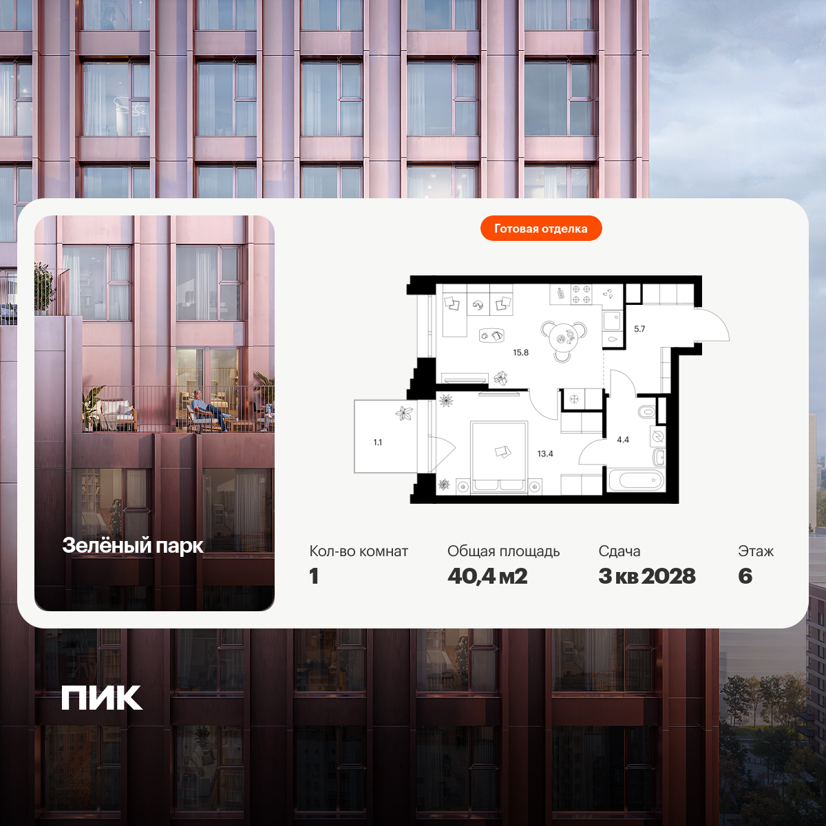 Однокомнатные квартиры в Зелёный парк - страница 4