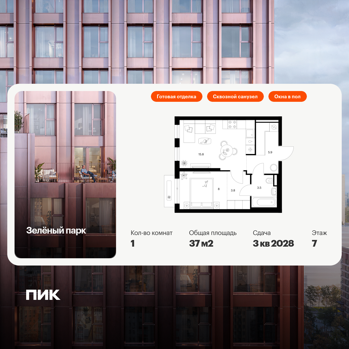 Однокомнатные квартиры в Зелёный парк - страница 5