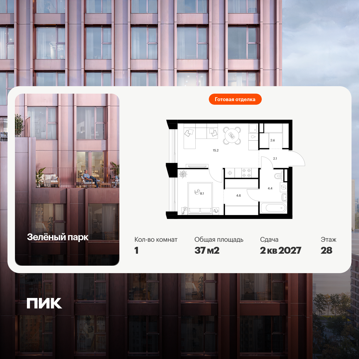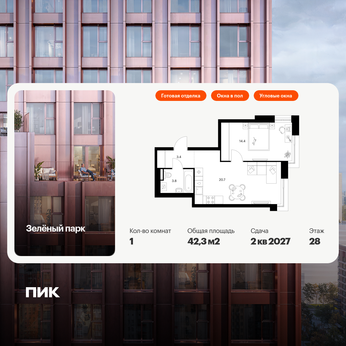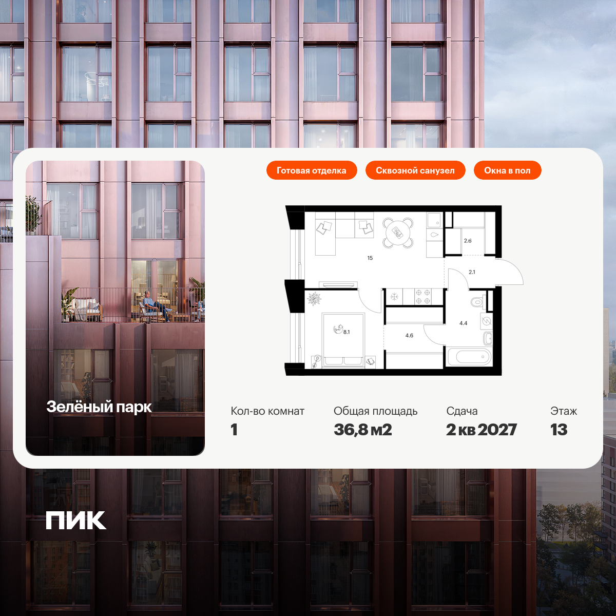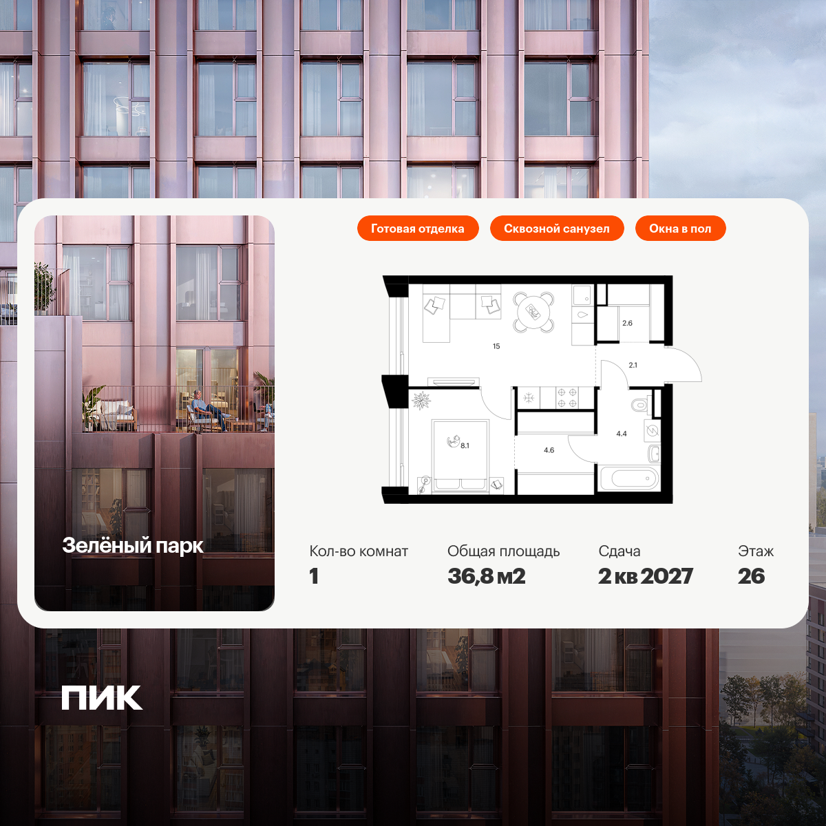Однокомнатные квартиры в Зелёный парк