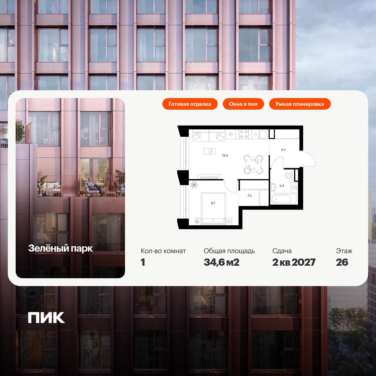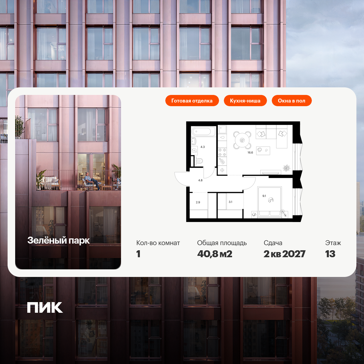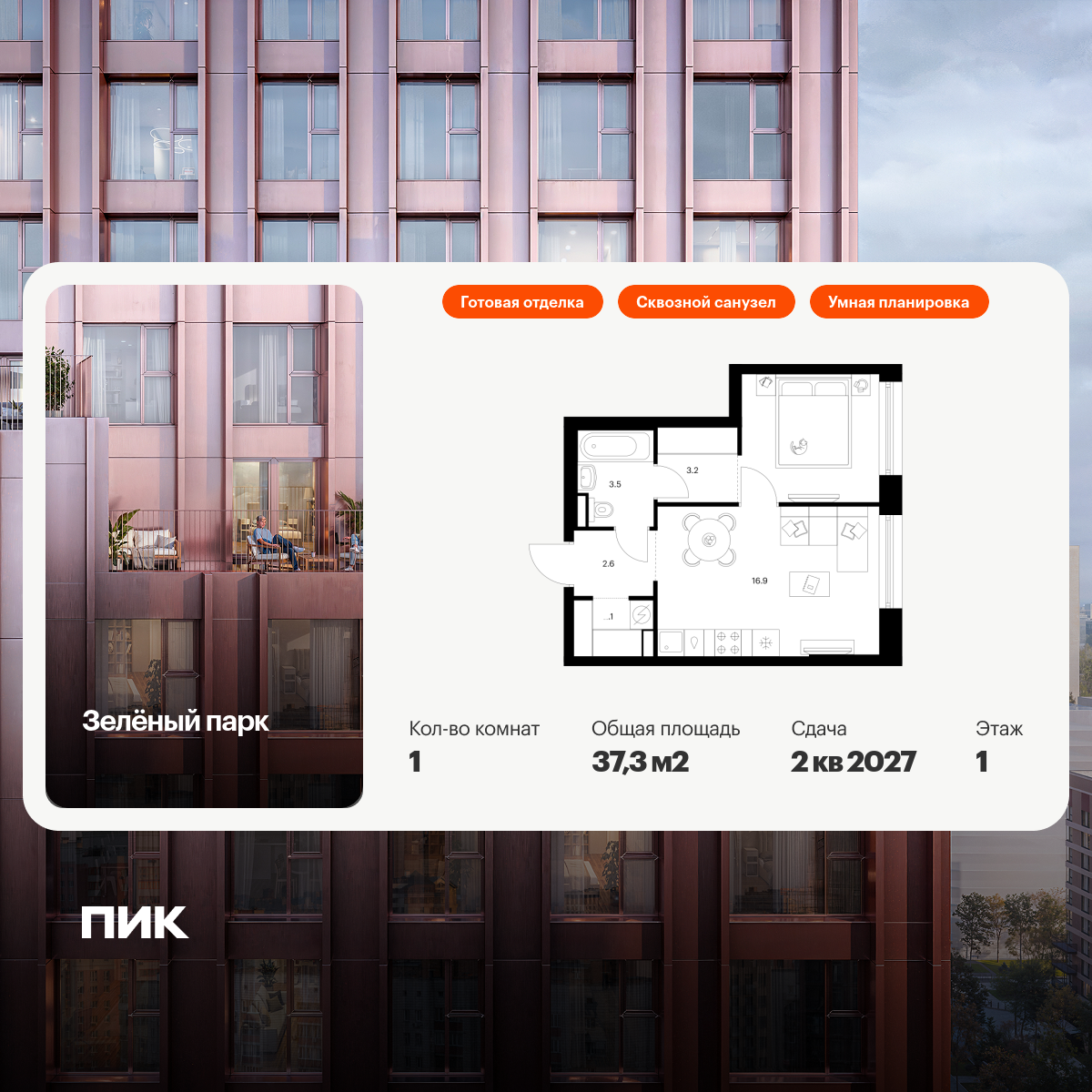 Однокомнатные квартиры в Зелёный парк