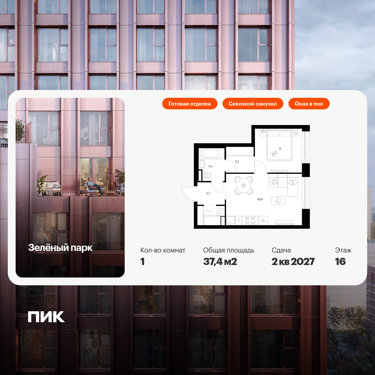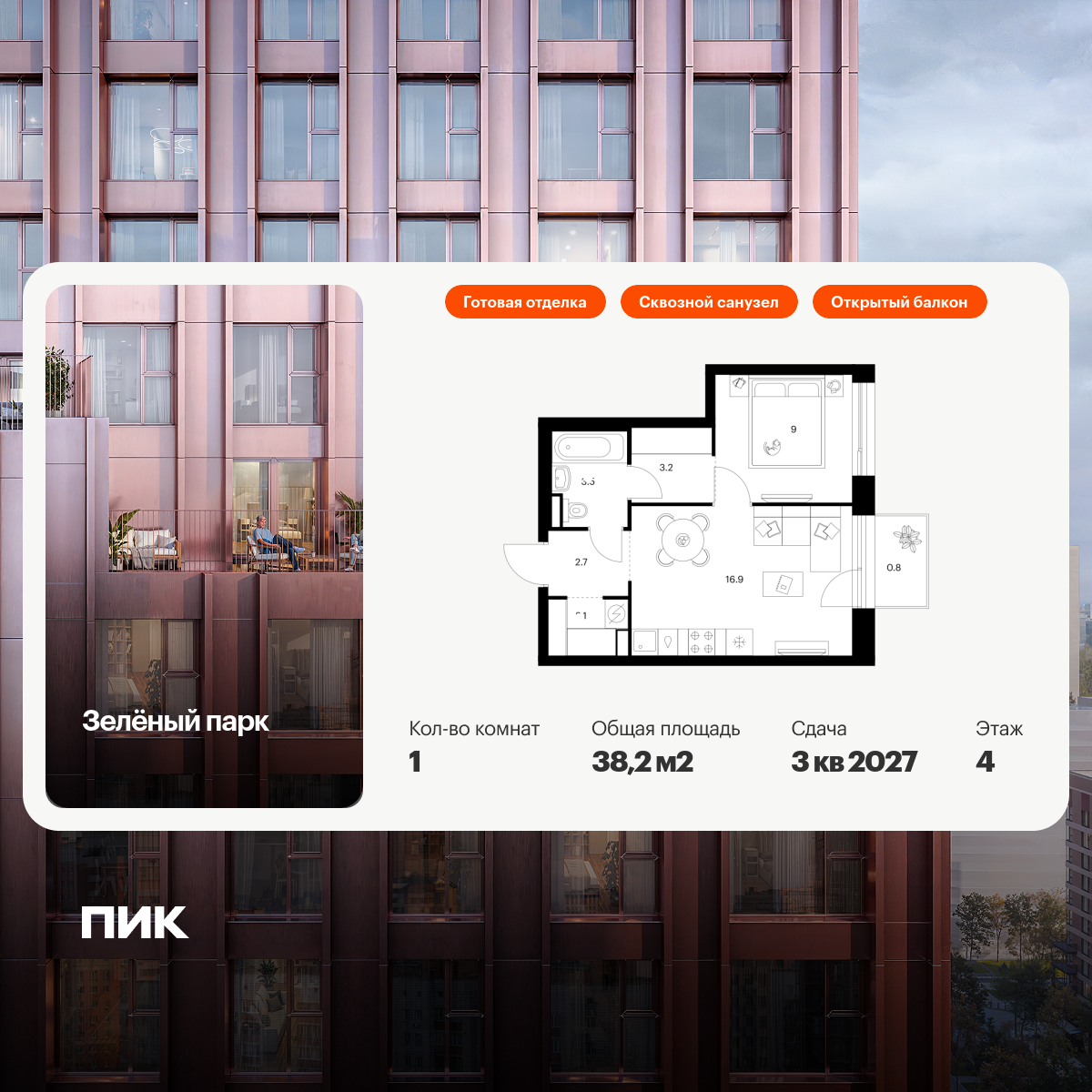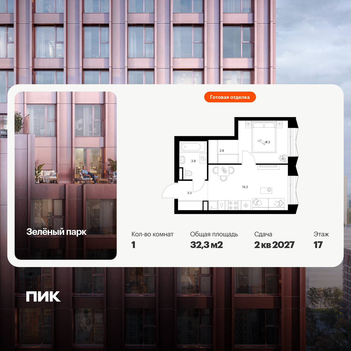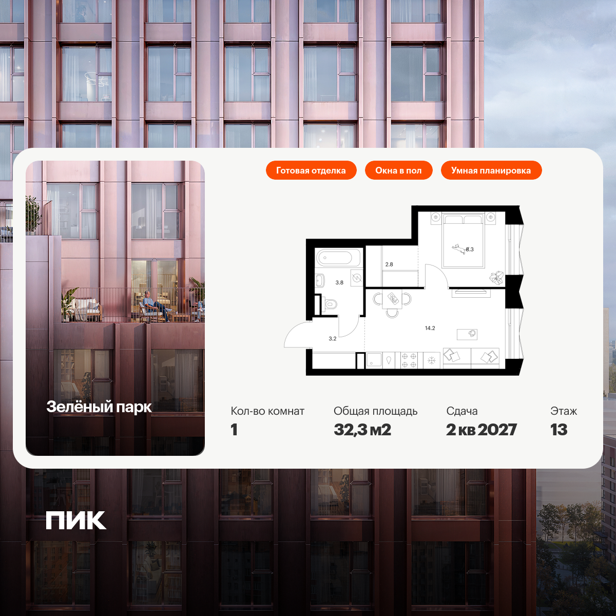 Однокомнатные квартиры в Зелёный парк