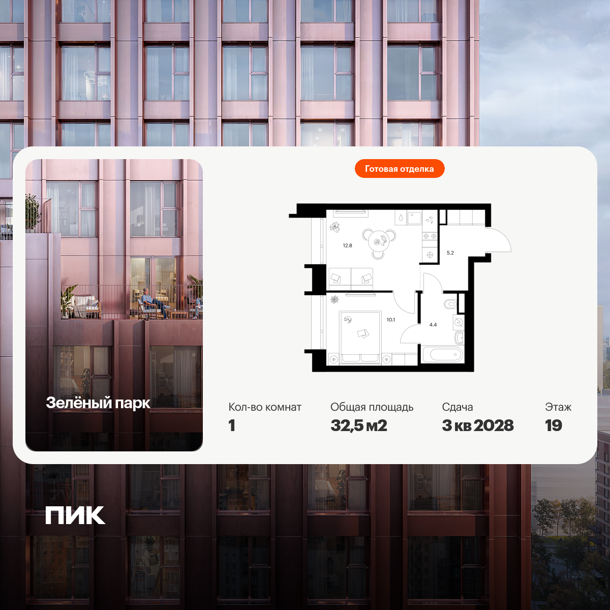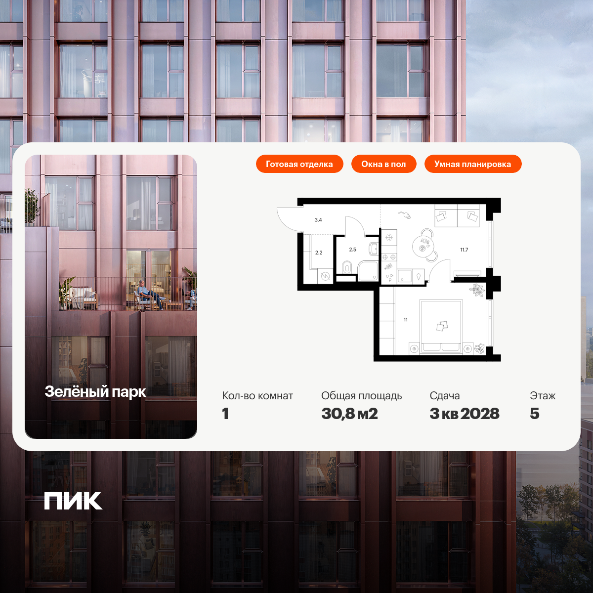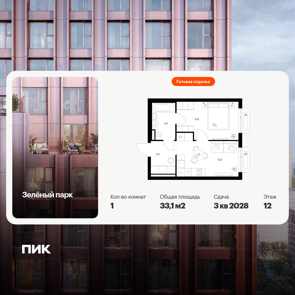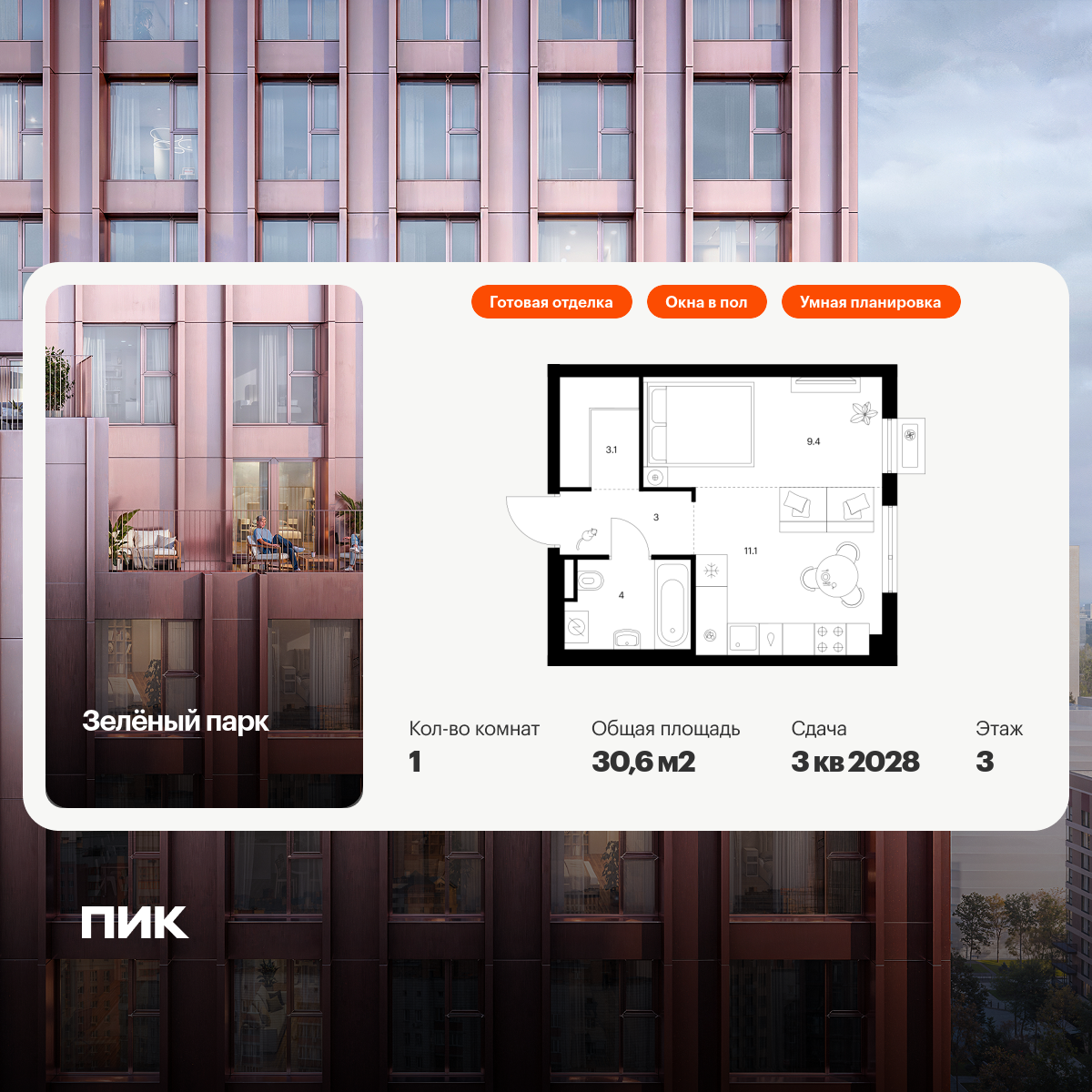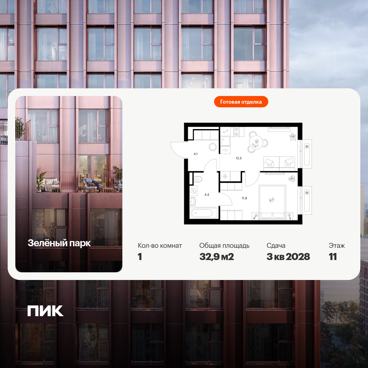 Однокомнатные квартиры в Зелёный парк