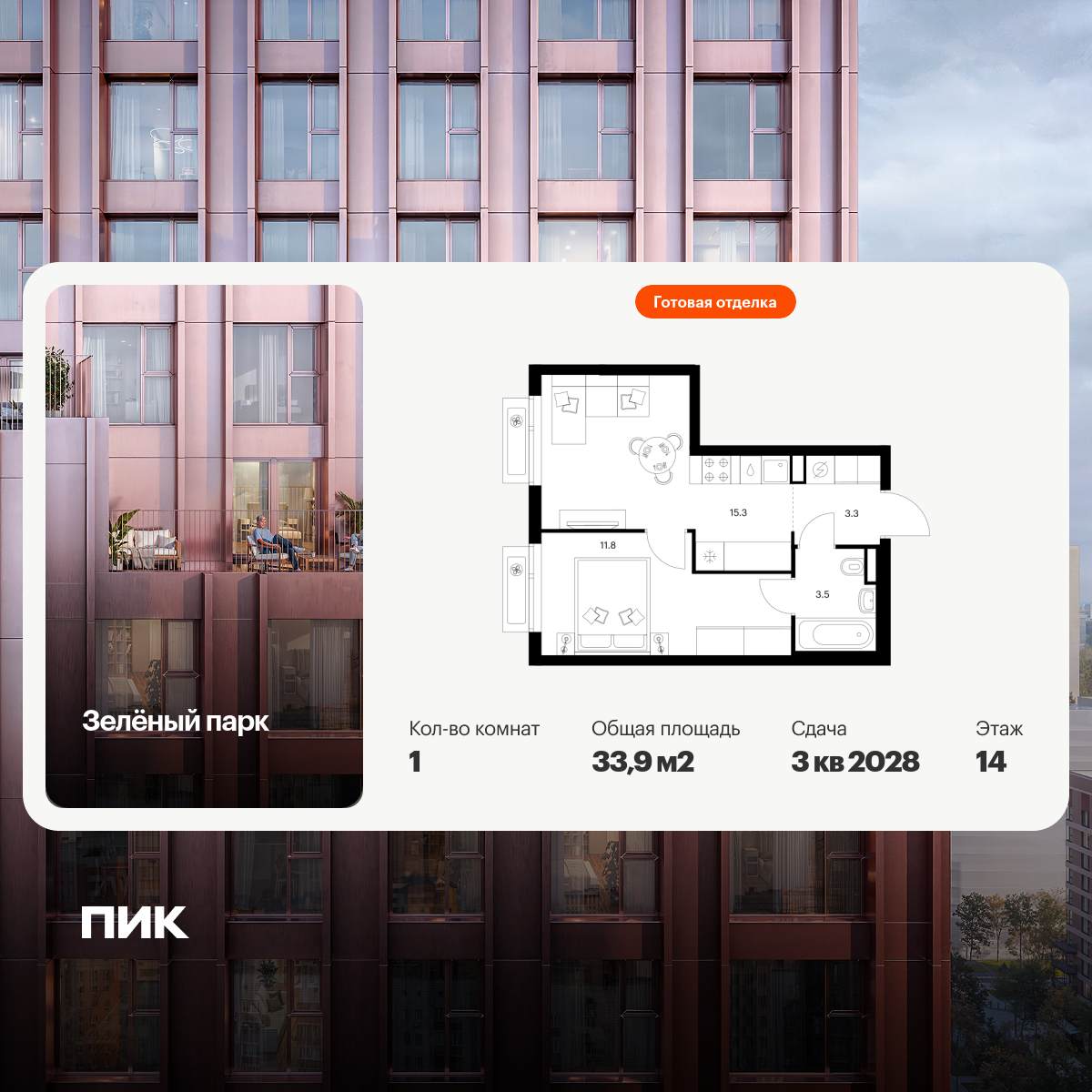 1-комнатная (33.9м2)