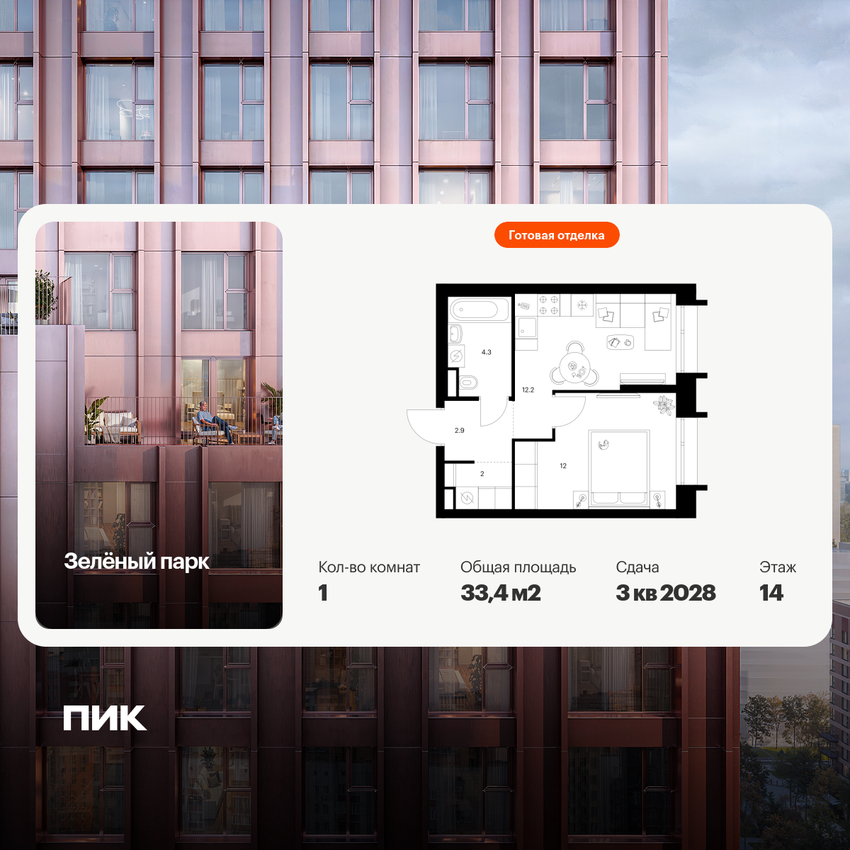 1-комнатная (33.4м2)