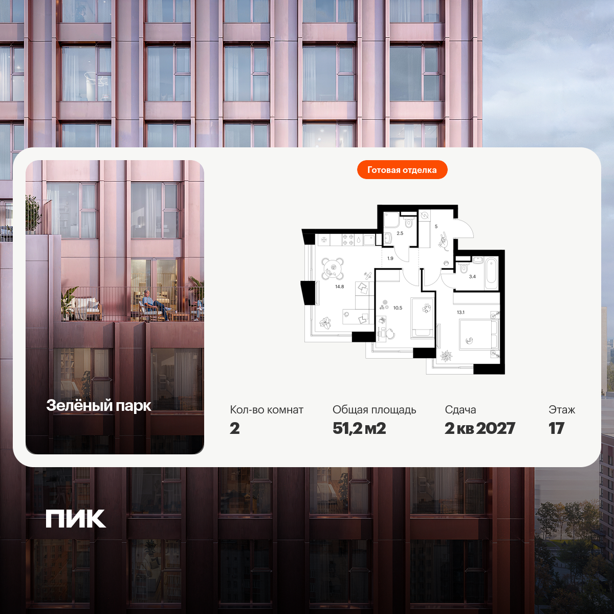 Двухкомнатные квартиры в Зелёный парк