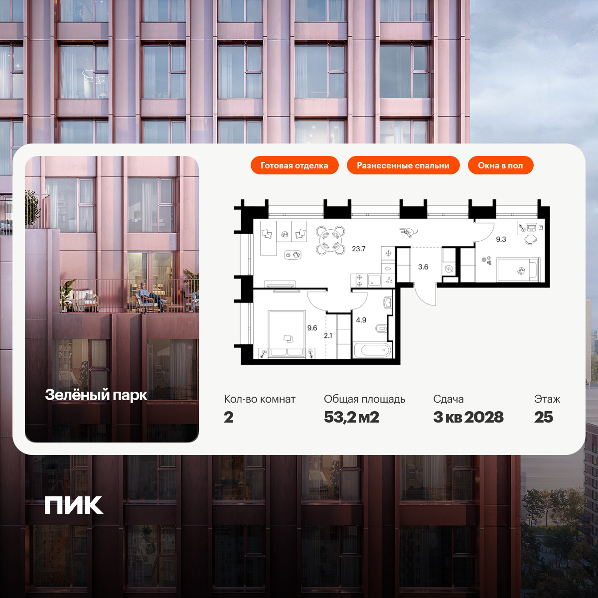 Евро двухкомнатные квартиры в Зелёный парк