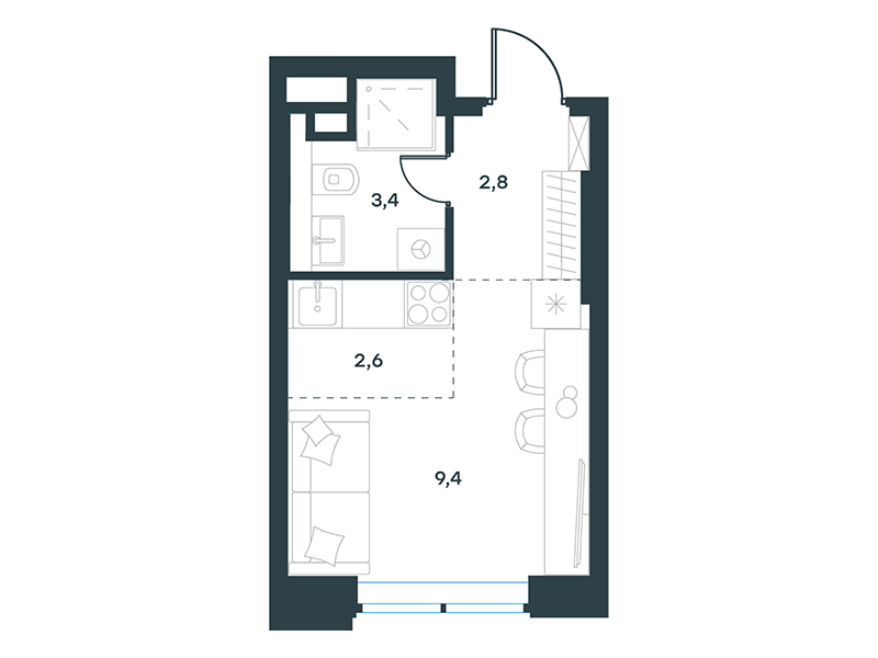 Квартиры-студии в Жилой комплекс Левел Причальный