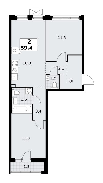 Евро 2-комнатная (59.4м2)