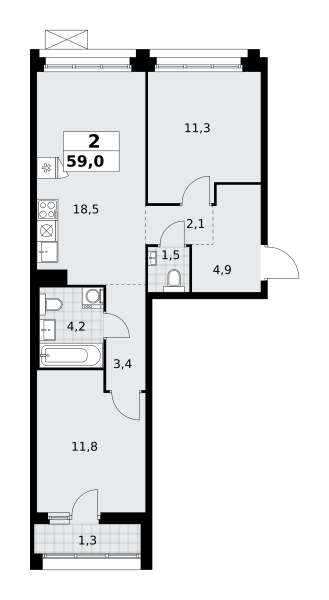 Евро 2-комнатная (59.1м2)