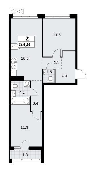Евро 2-комнатная (58.8м2)