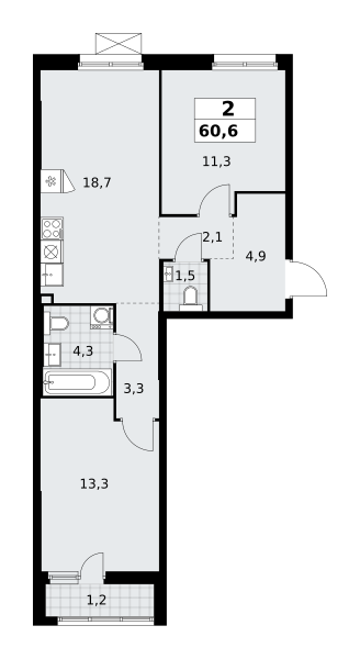 Евро 2-комнатная (60.6м2)