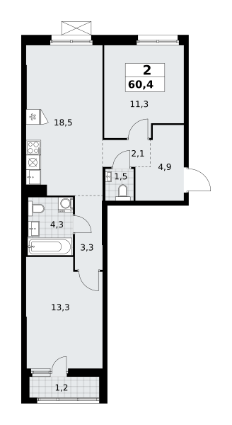 Евро 2-комнатная (60.3м2)