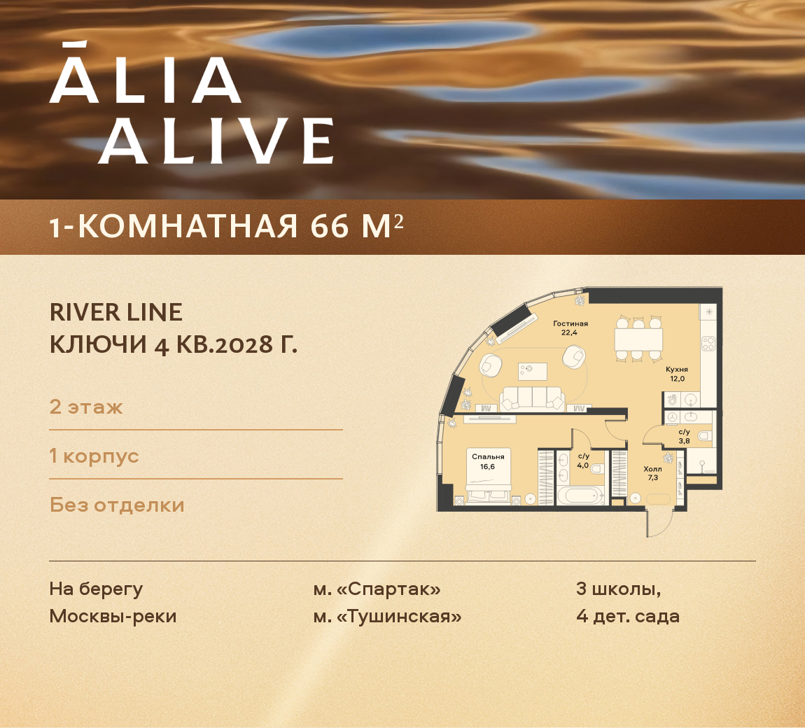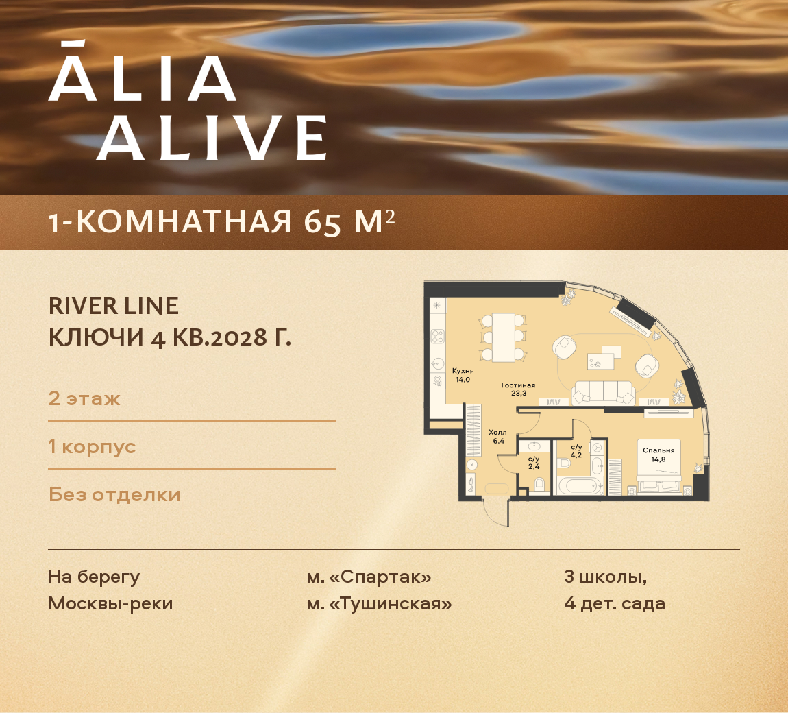 Жилой комплекс «ALIA» расположился на берегу Москвы-реки. Удобная транспортная развязка позволяет всем автовладельцам комплекса беспрепятственно добраться до любого уголка столицы. Для удобства тех, кто предпочитает общественный транспорт, в пешей доступности находятся многие станции метро и автобусные остановки. Возведение зданий осуществлялось с помощью современных материалов, которые гарантируют оптимальный уровень звукоизоляции помещений, а также поддержание необходимой температуры внутри.