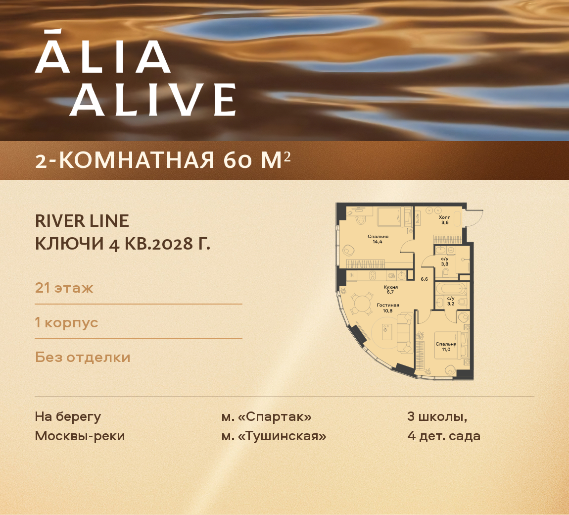 Жилой комплекс «ALIA» расположился на берегу Москвы-реки. Удобная транспортная развязка позволяет всем автовладельцам комплекса беспрепятственно добраться до любого уголка столицы. Для удобства тех, кто предпочитает общественный транспорт, в пешей доступности находятся многие станции метро и автобусные остановки. Возведение зданий осуществлялось с помощью современных материалов, которые гарантируют оптимальный уровень звукоизоляции помещений, а также поддержание необходимой температуры внутри.