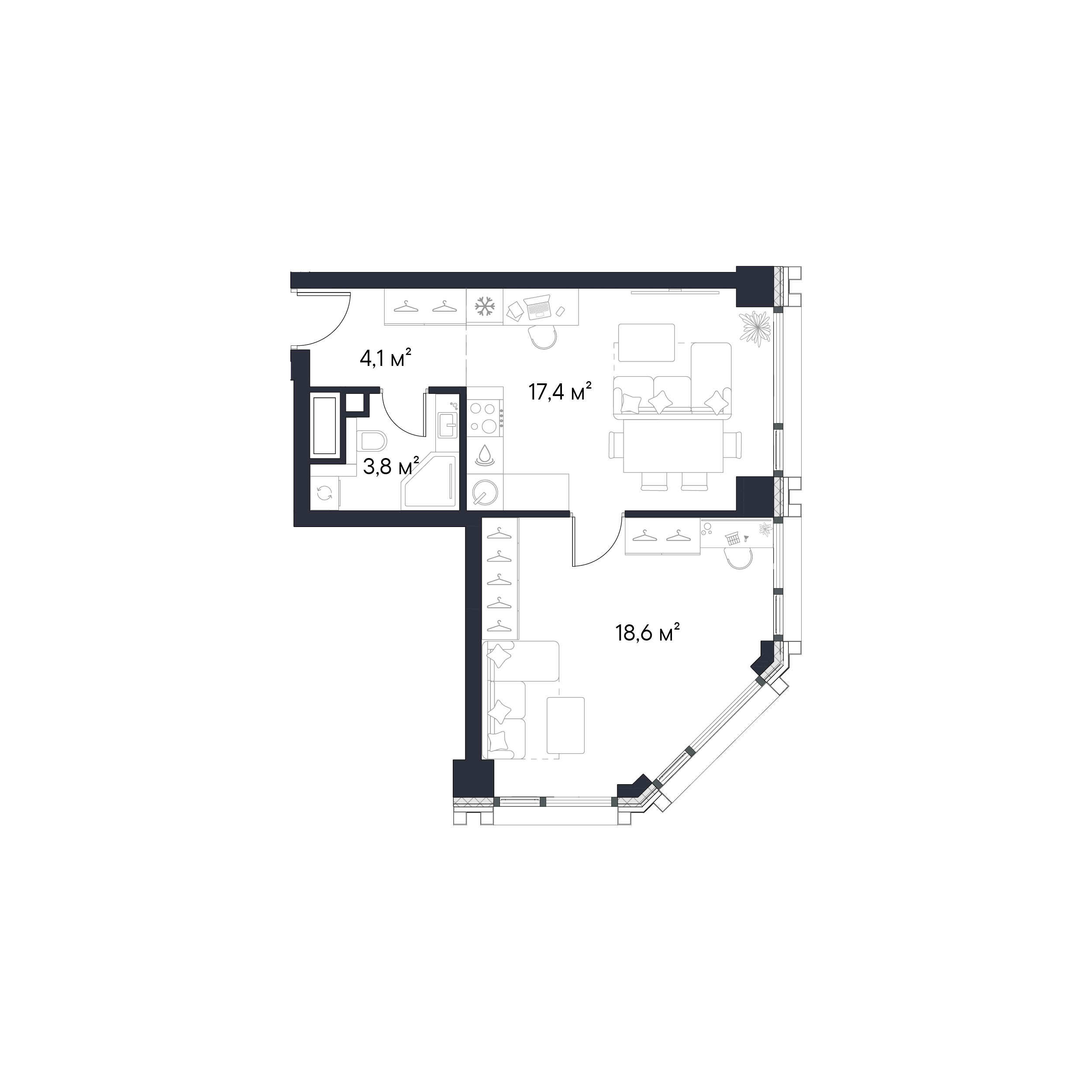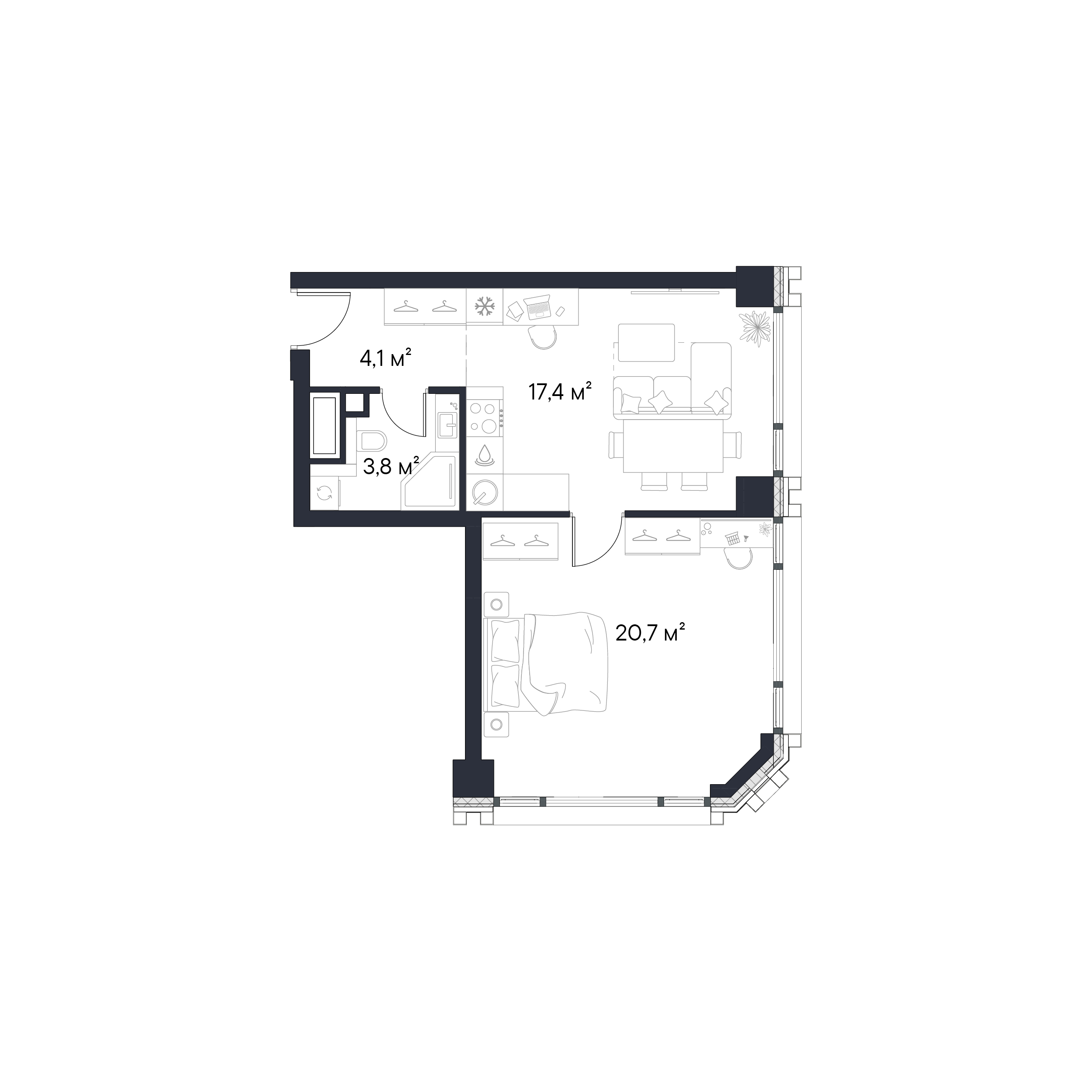 • Панорамные окна высотой 2,75 м