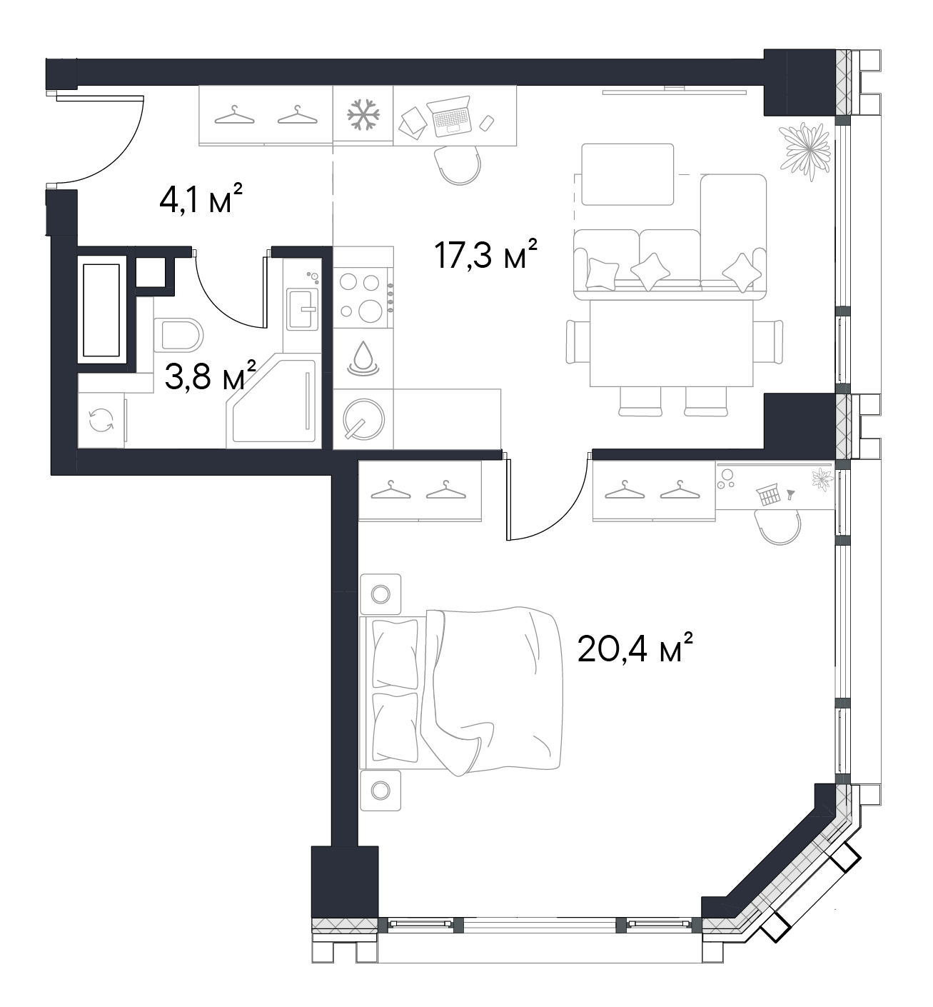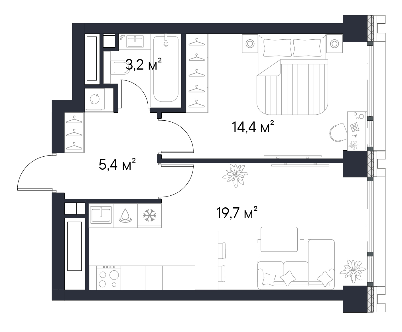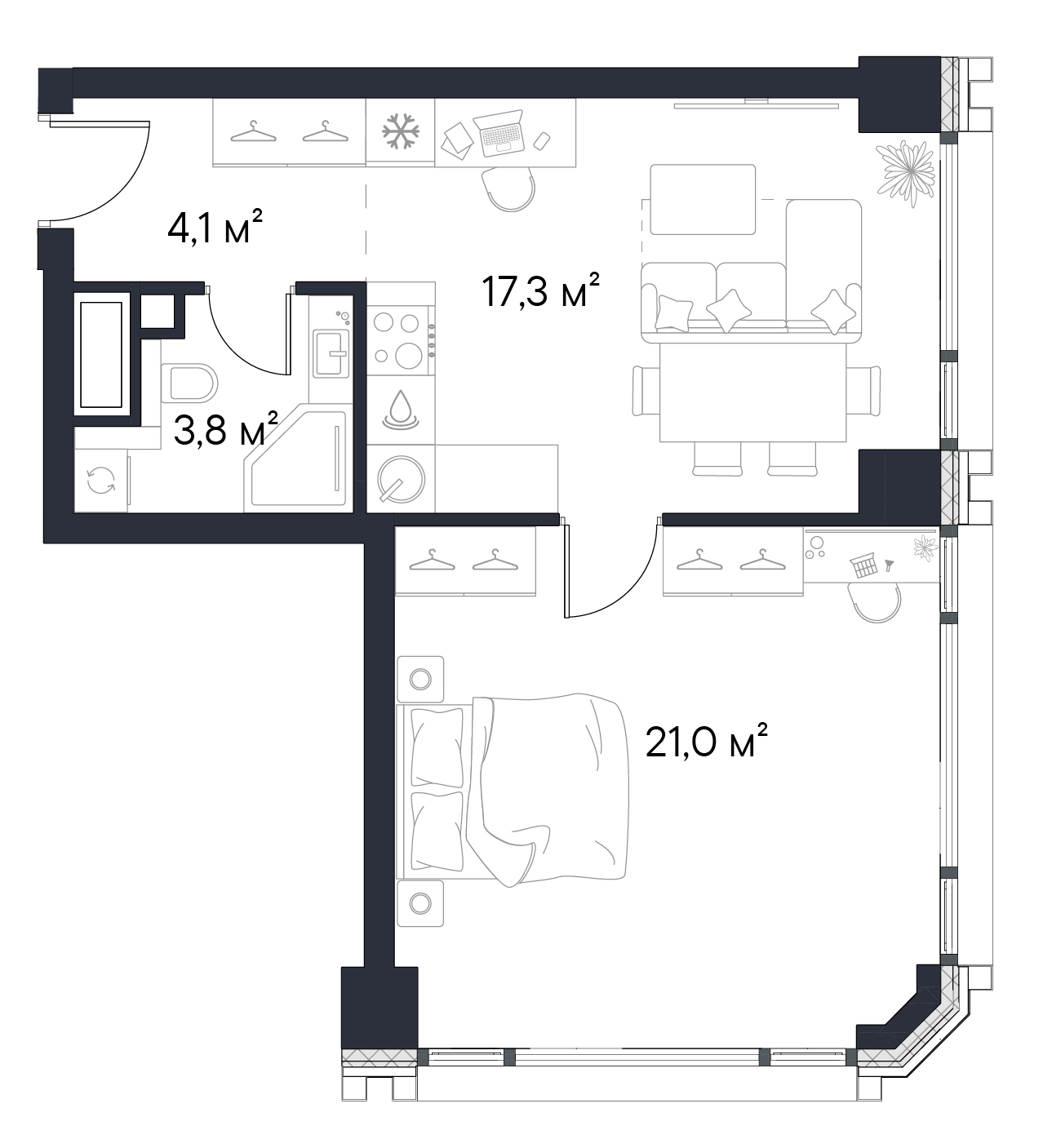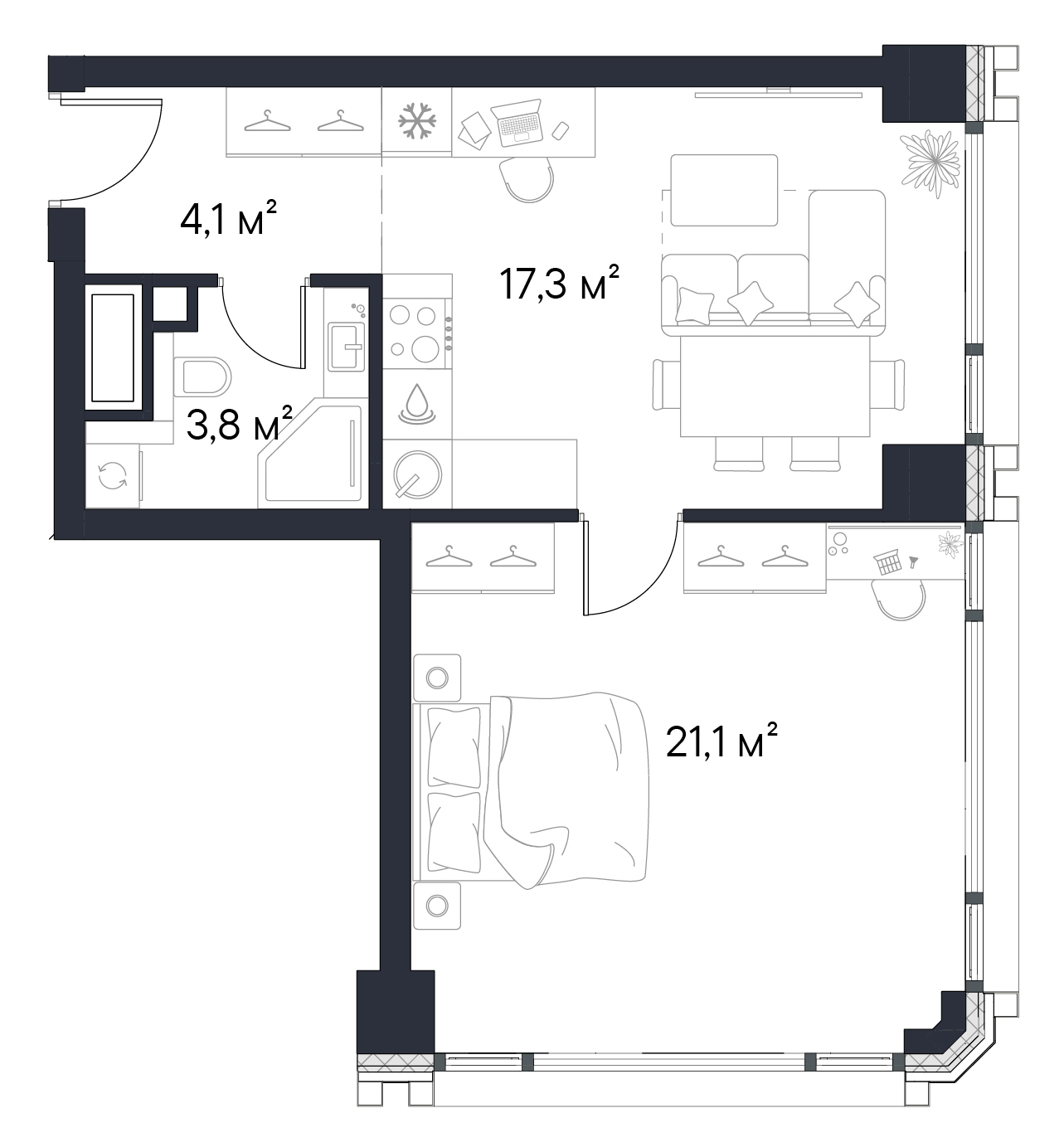 • Панорамные окна высотой 2,75 м
