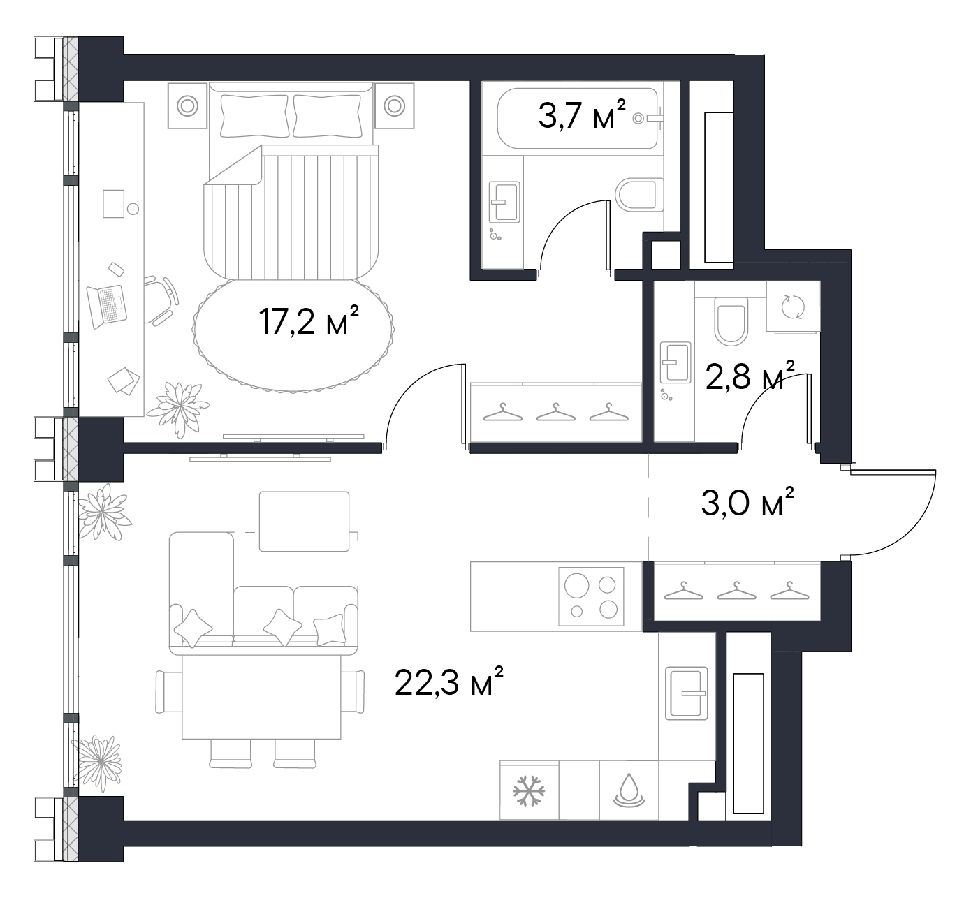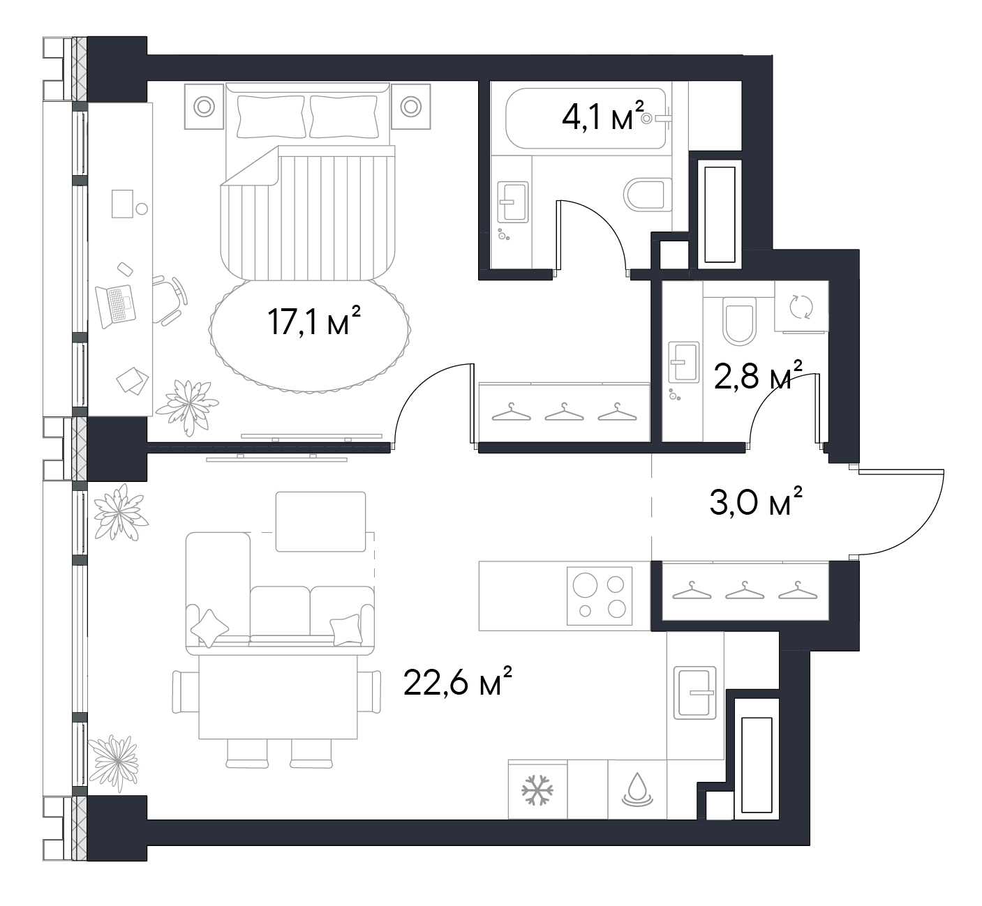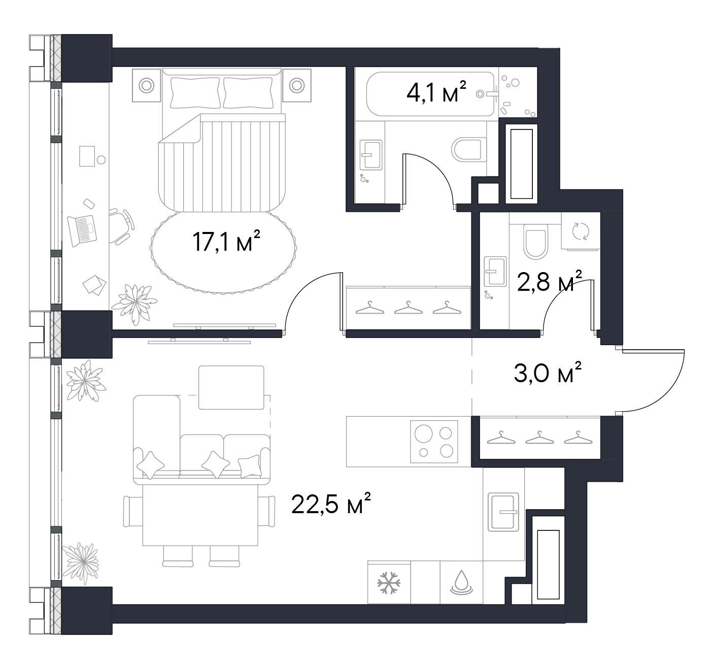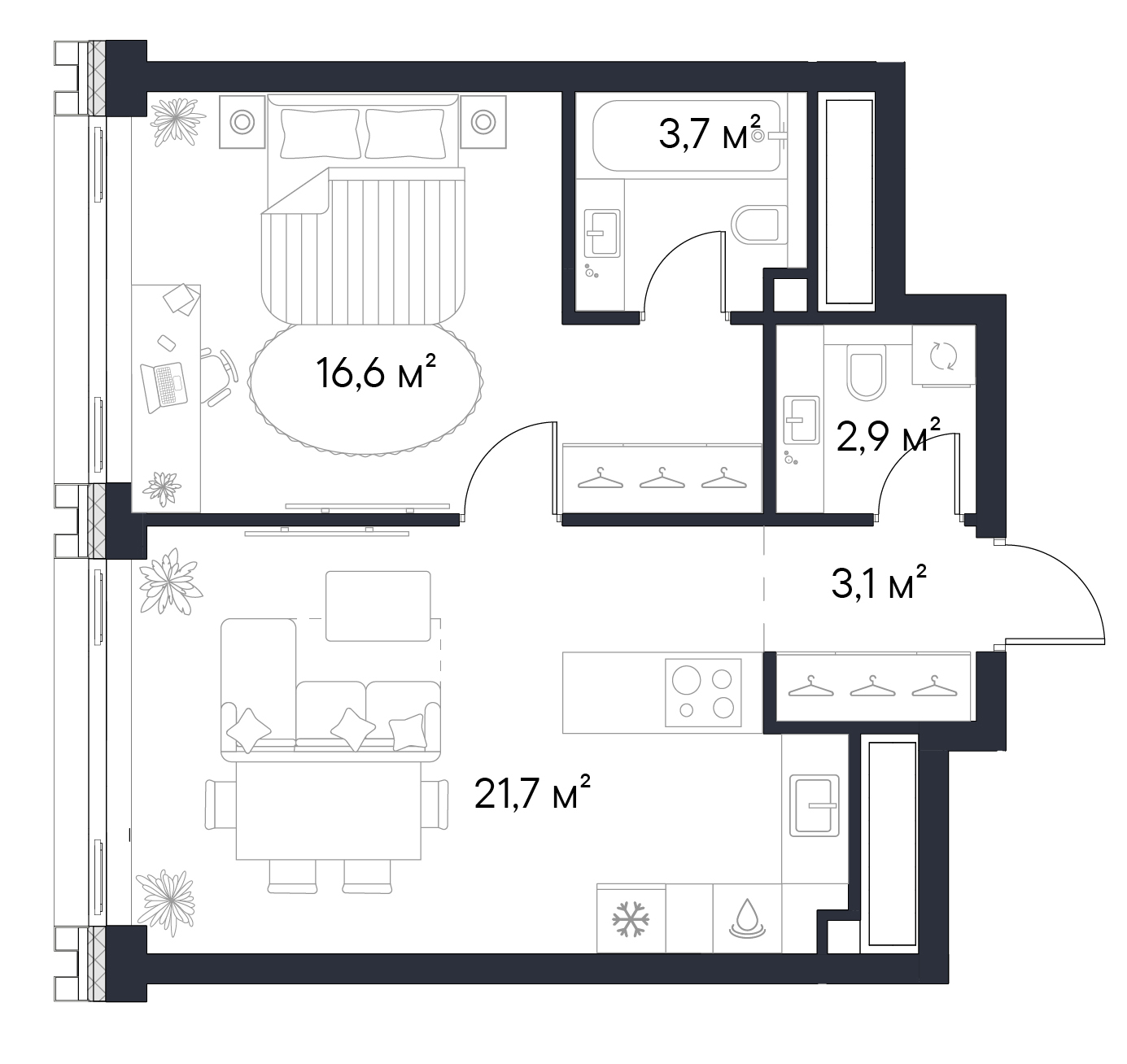 • Панорамные окна высотой 2,75 м