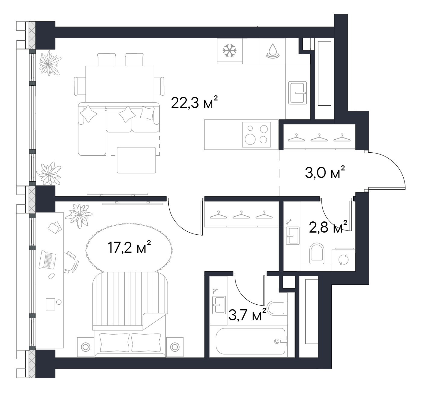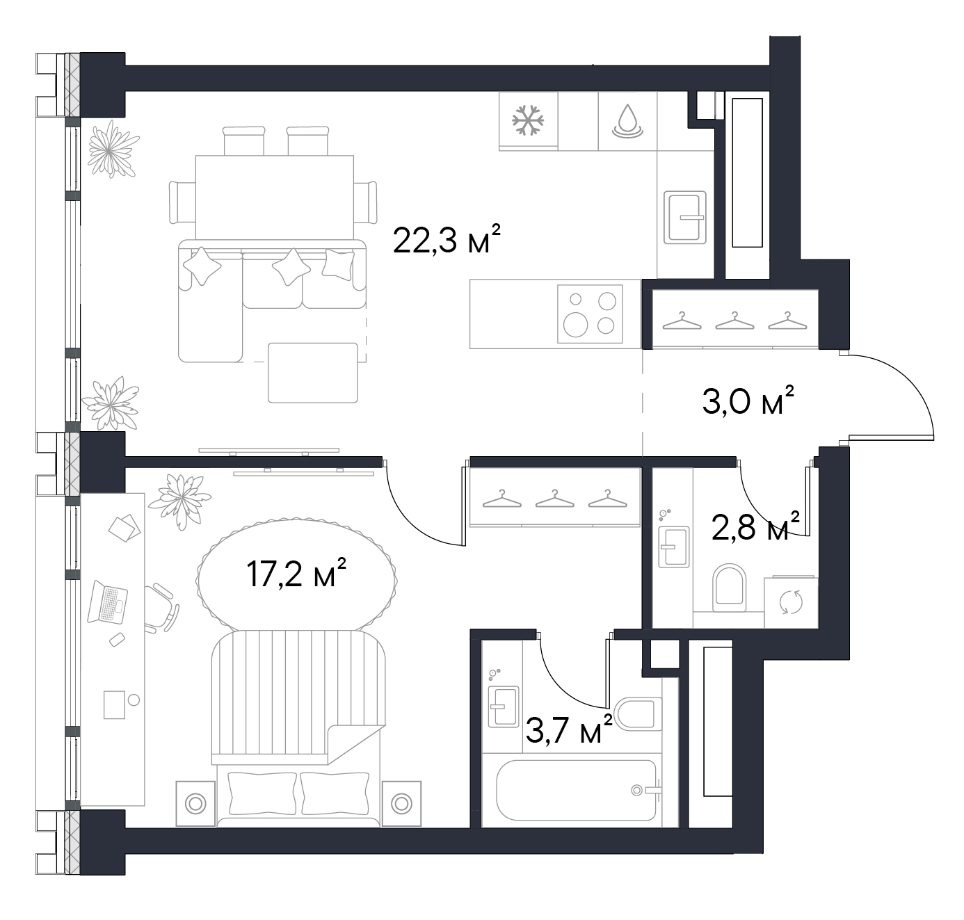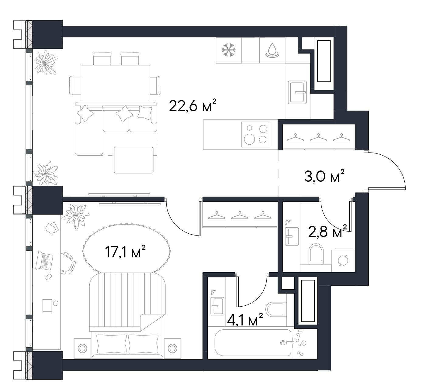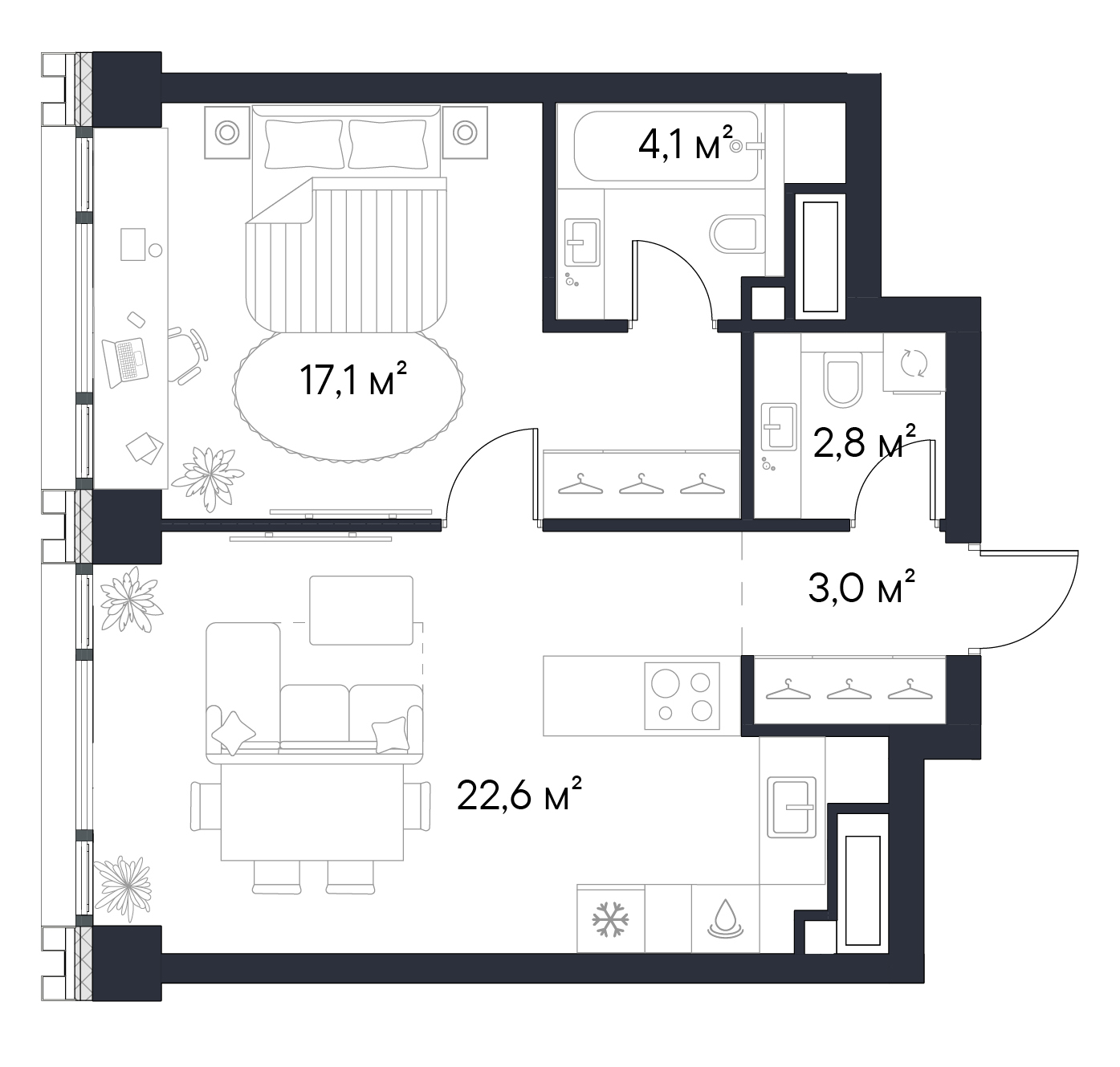 • Переменная этажность — от 24 до 49 этажей
