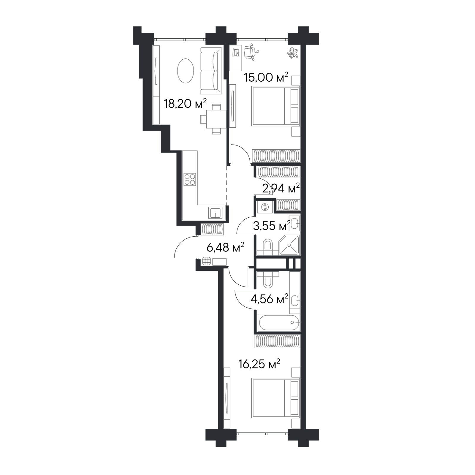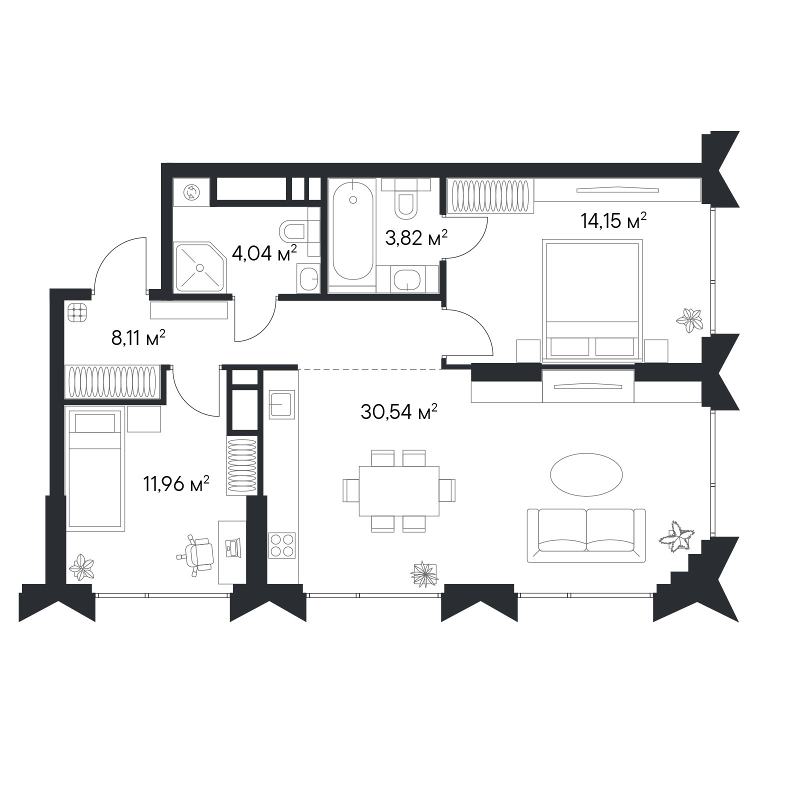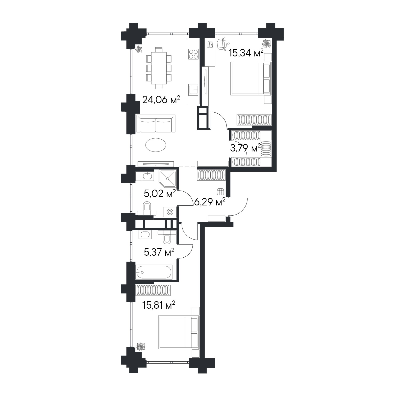 • Переменная этажность — от 24 до 49 этажей