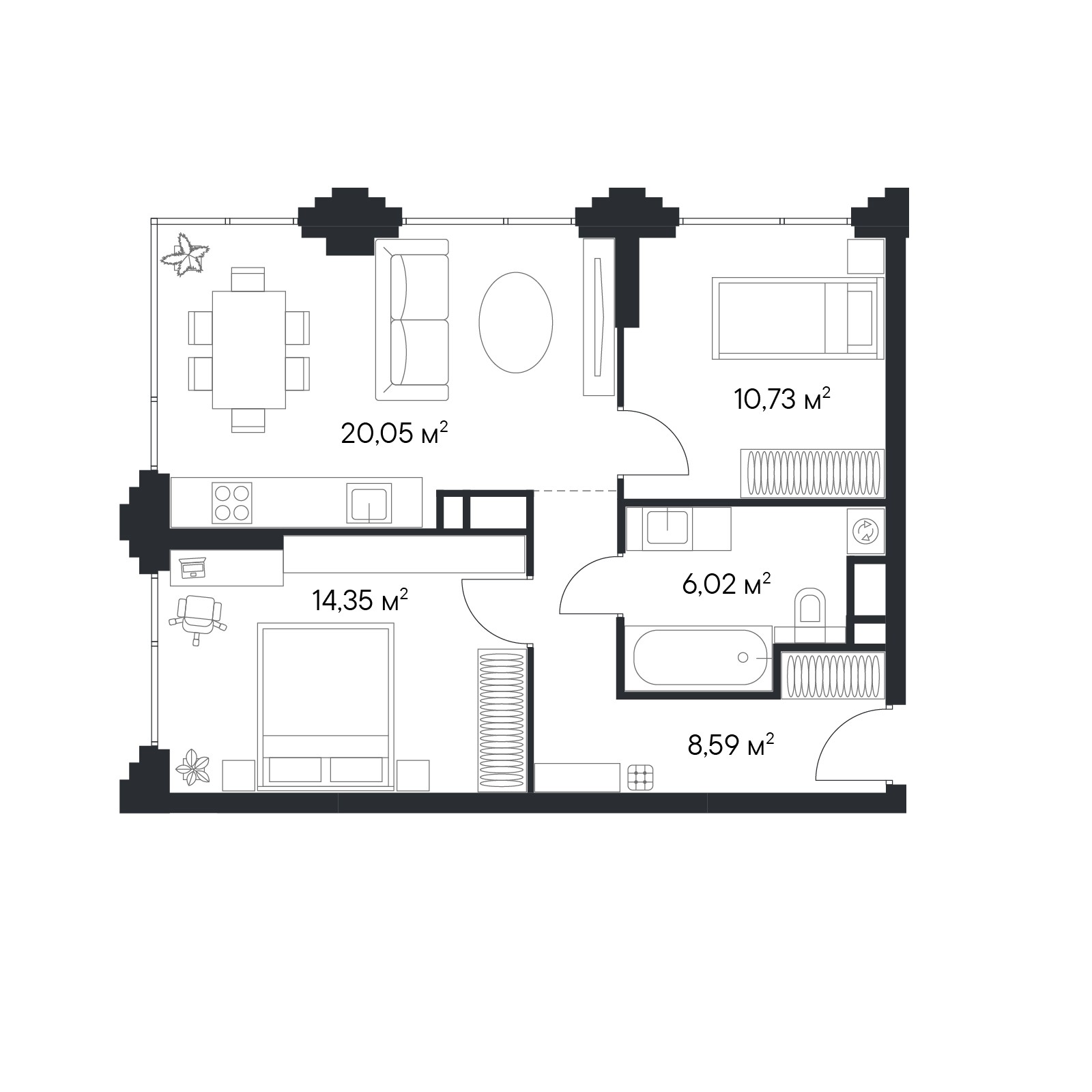 Ландшафтные архитекторы бюро А4 продумали благоустройство квартала как систему взаимосвязанных пространств для отдыха и вдохновения. Уникальное wellness-пространство гармонично вписано в городской ландшафт и создает атмосферу уверенности и спокойствия.