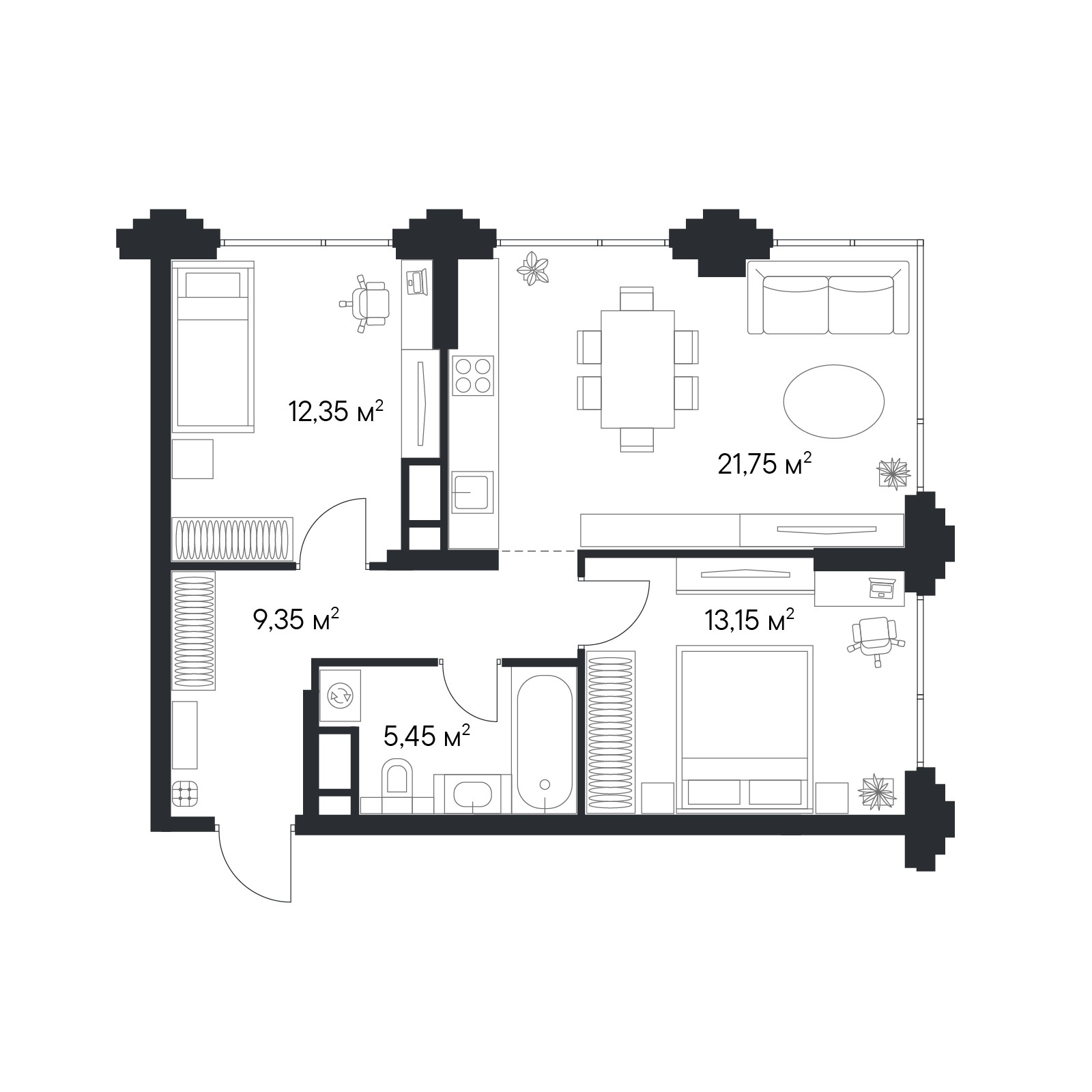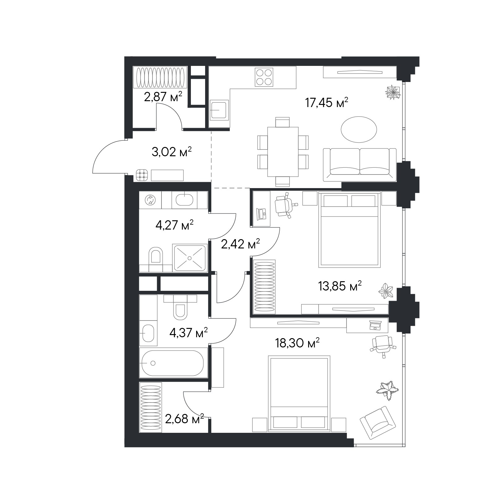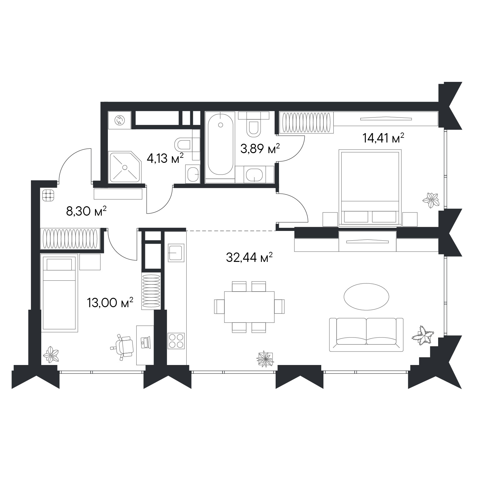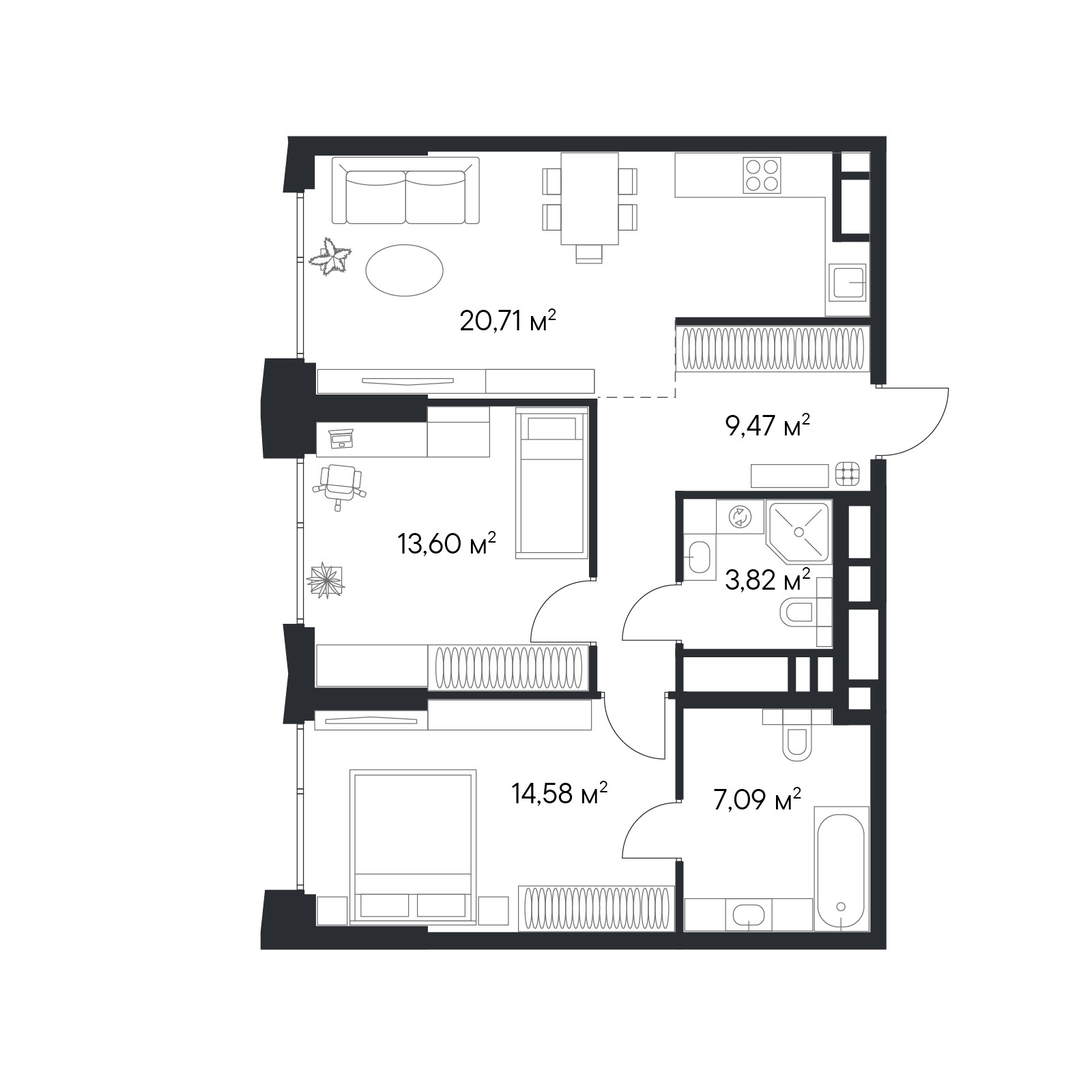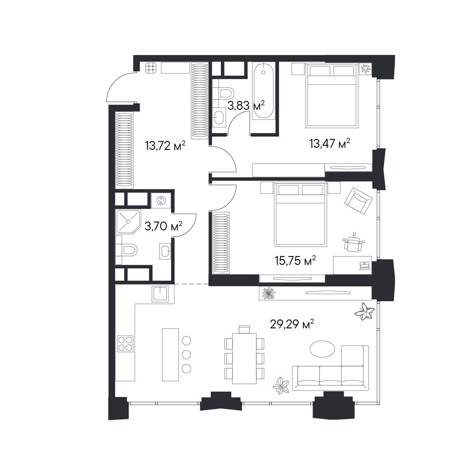 • Панорамные окна высотой 2,75 м