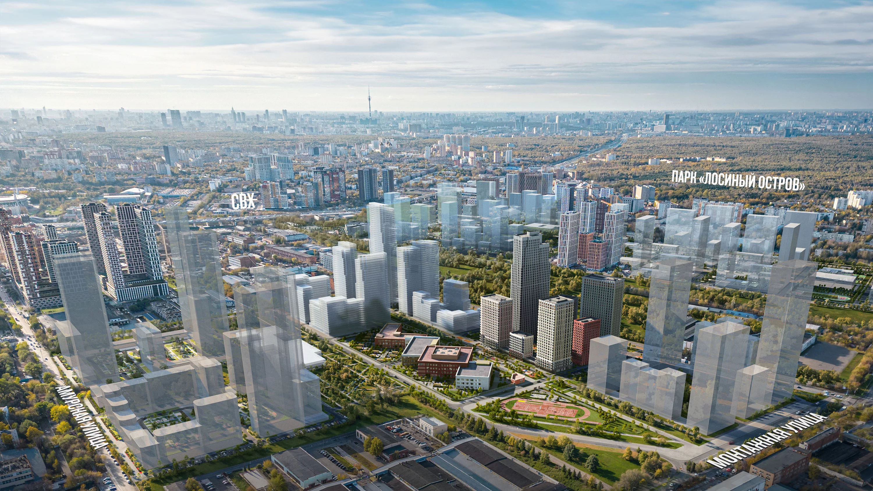 Проект состоит из зданий разной высоты и разной по характеру архитектуры. Узнаваемой доминантой квартала станет башня из стекла и металла, напоминающая водопад.
