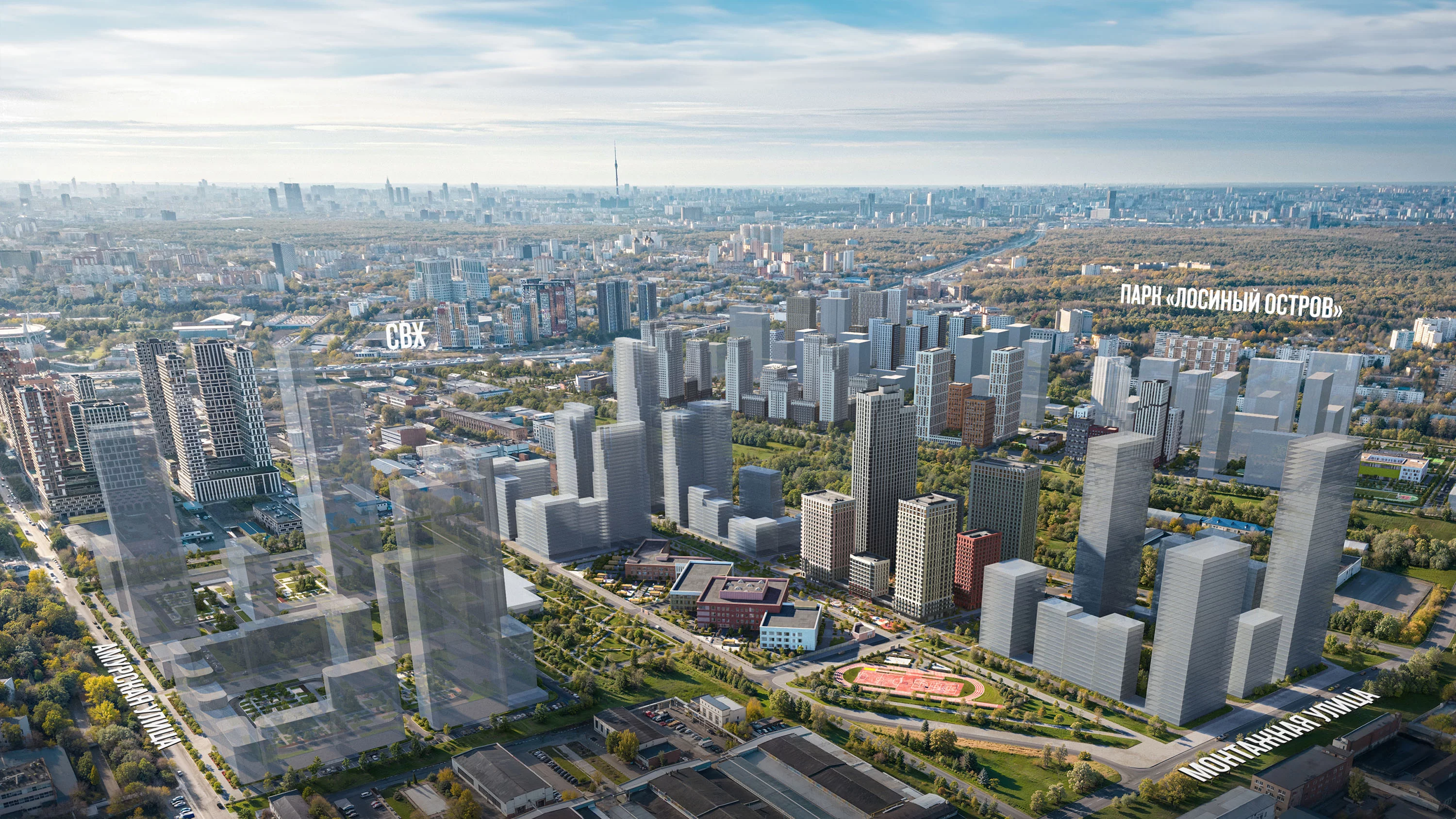 Проект состоит из зданий разной высоты и разной по характеру архитектуры. Узнаваемой доминантой квартала станет башня из стекла и металла.