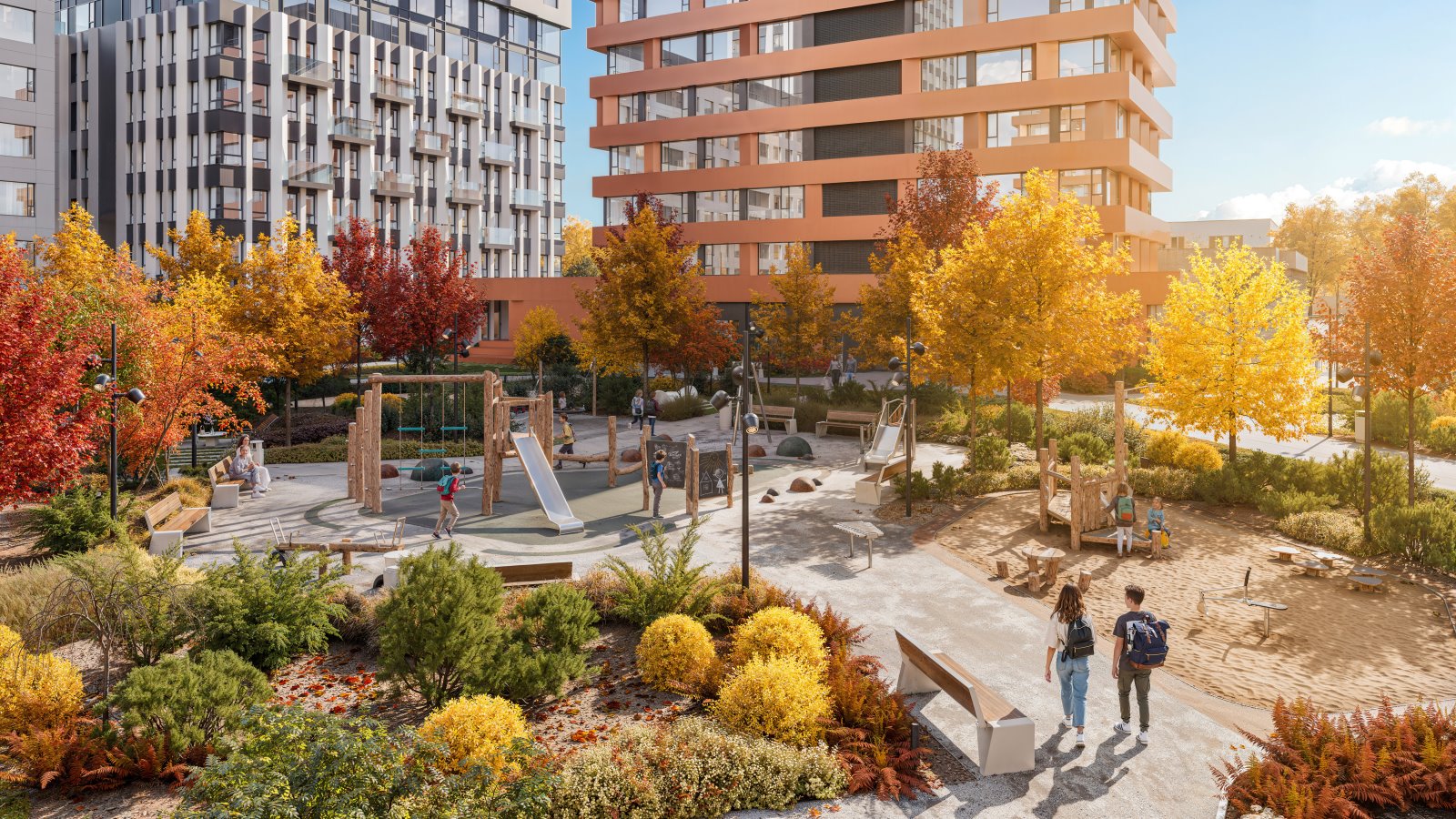 Опции, которые предлагает застройщик для проекта ЖК Акценты: школа, детский сад, коммерческие помещения на первом этаже, детские и спортивные площадки, озеленение, подземная парковка, закрытый двор без машин, видеонаблюдение, контроль доступа.