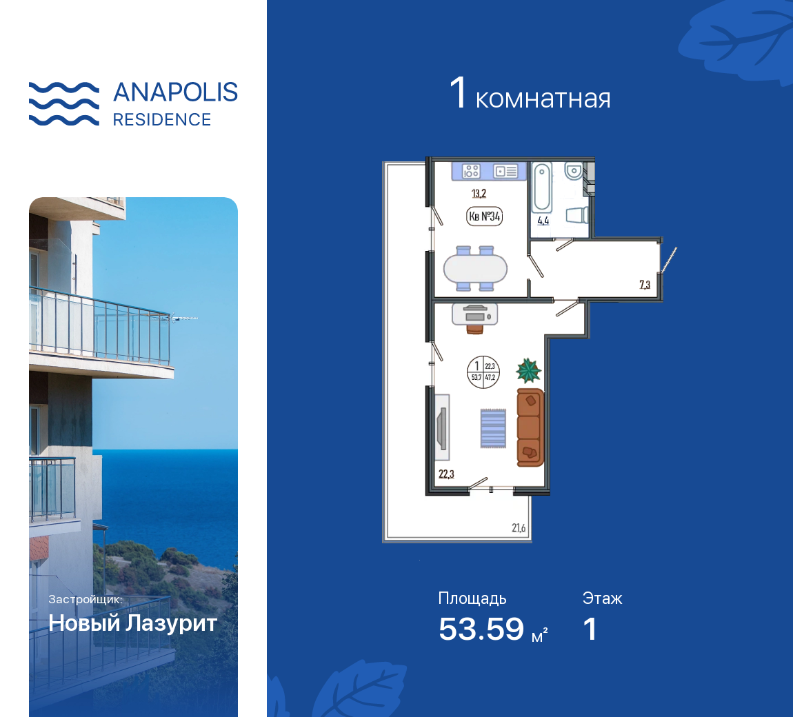 Однокомнатные квартиры в ЖК Anapolis Residence (Резиденция Анаполис)