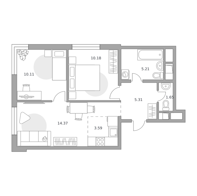 Проект комплекса включает 10 жилых домов высотой от 4 до 6 этажей с благоустроенной придомовой территорией, закрытой от машин. Доступен большой выбор планировок площадью от 22 до 68 кв.м.