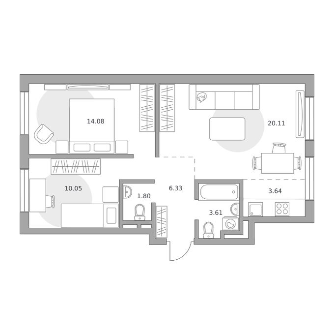 Проект комплекса включает 10 жилых домов высотой от 4 до 6 этажей с благоустроенной придомовой территорией, закрытой от машин. Доступен большой выбор планировок площадью от 22 до 68 кв.м.