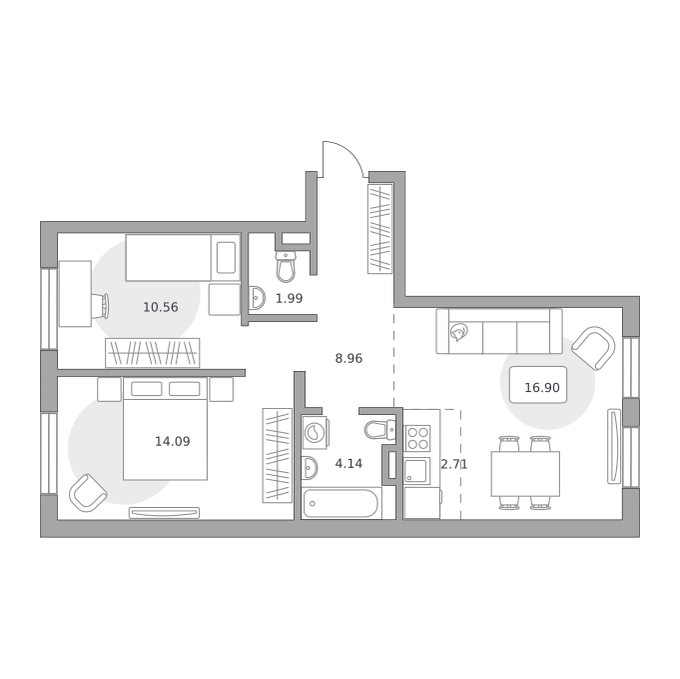 Проект комплекса включает 10 жилых домов высотой от 4 до 6 этажей с благоустроенной придомовой территорией, закрытой от машин. Доступен большой выбор планировок площадью от 22 до 68 кв.м.
