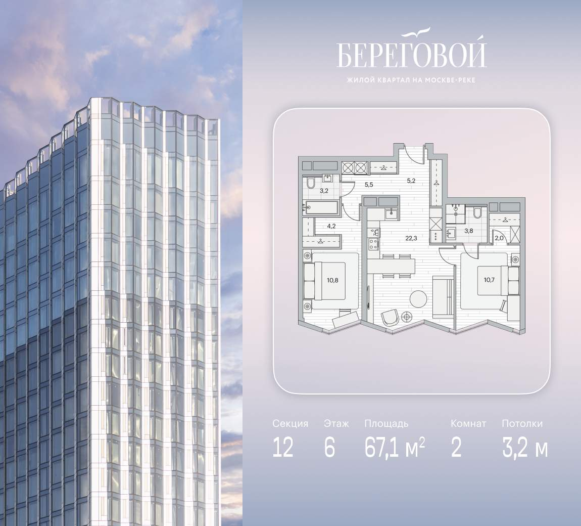 Премиальный жилой квартал на берегу Москвы-реки с прямым выходом на тихую прогулочную набережную. Во всех квартирах – панорамные окна в пол, которые служат источником мягкого естественного света.