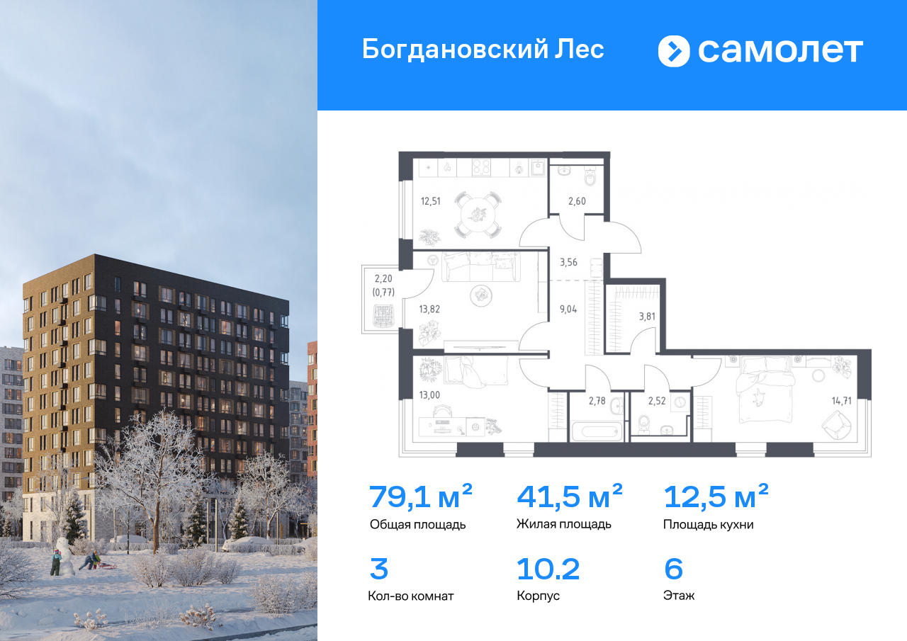 Трехкомнатные квартиры в ЖК Богдановский Лес