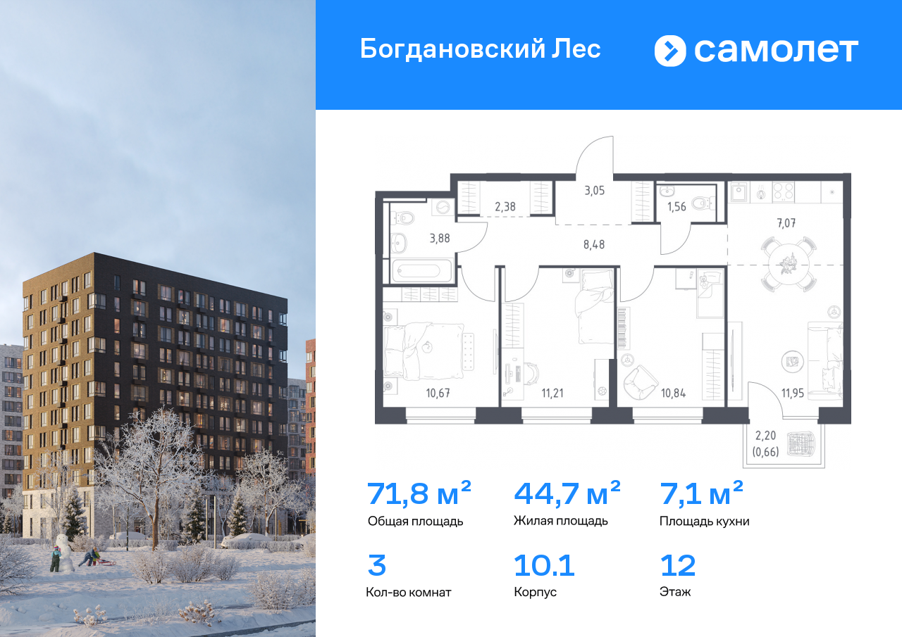 Трехкомнатные квартиры в ЖК Богдановский Лес