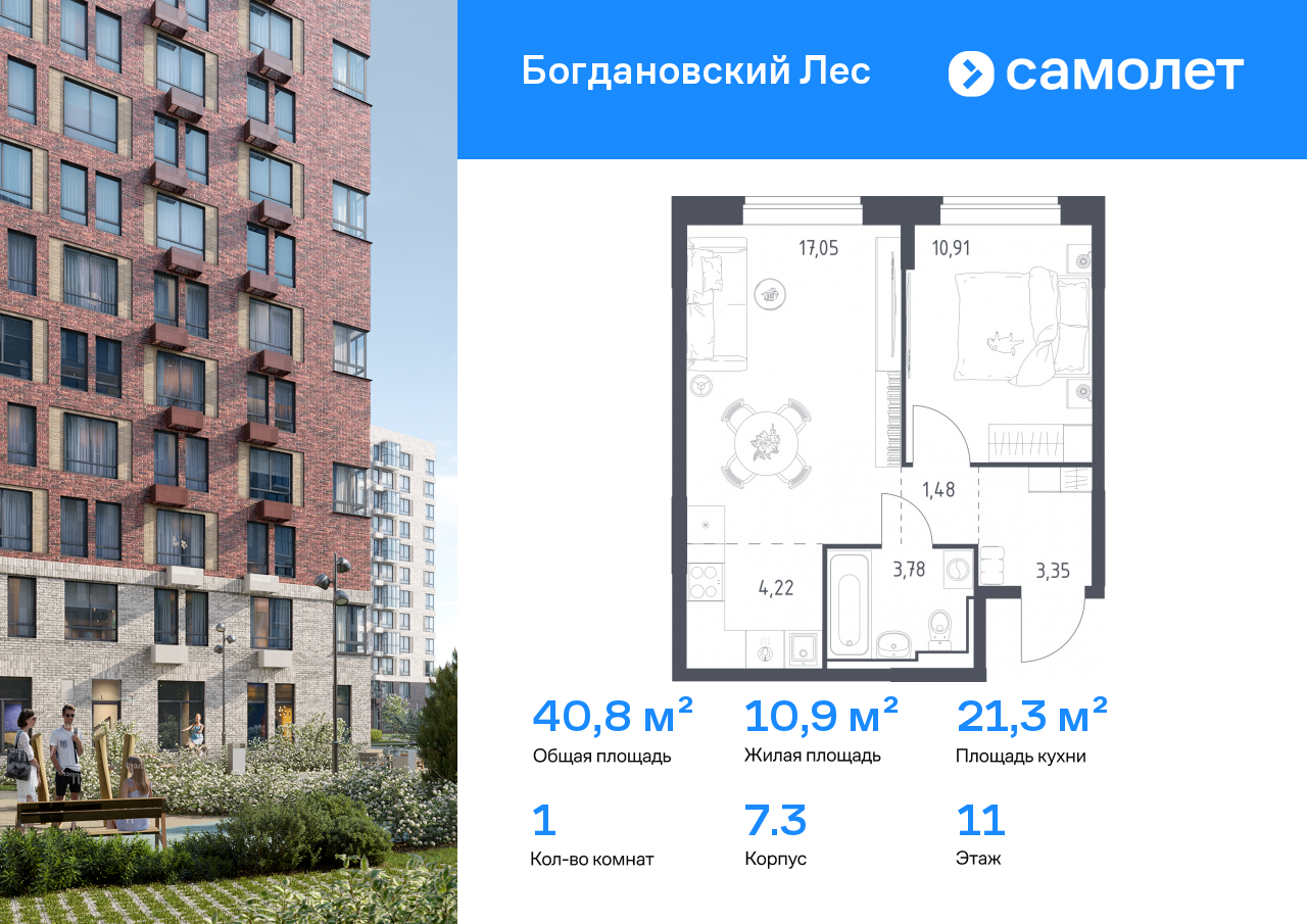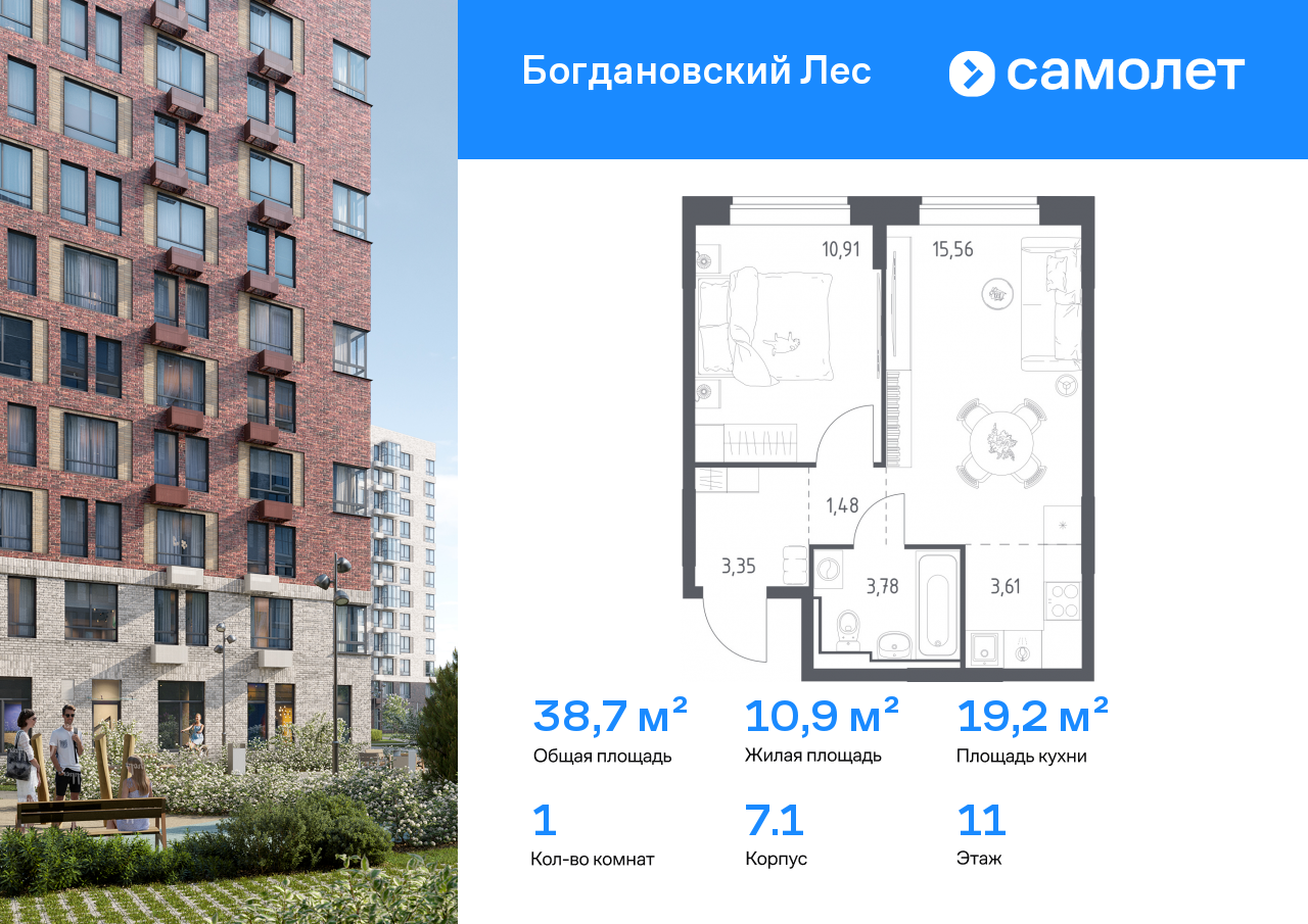 Евро однокомнатные квартиры в ЖК Богдановский Лес