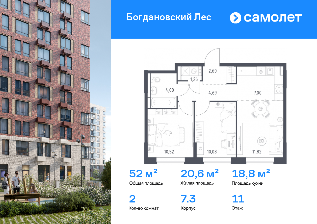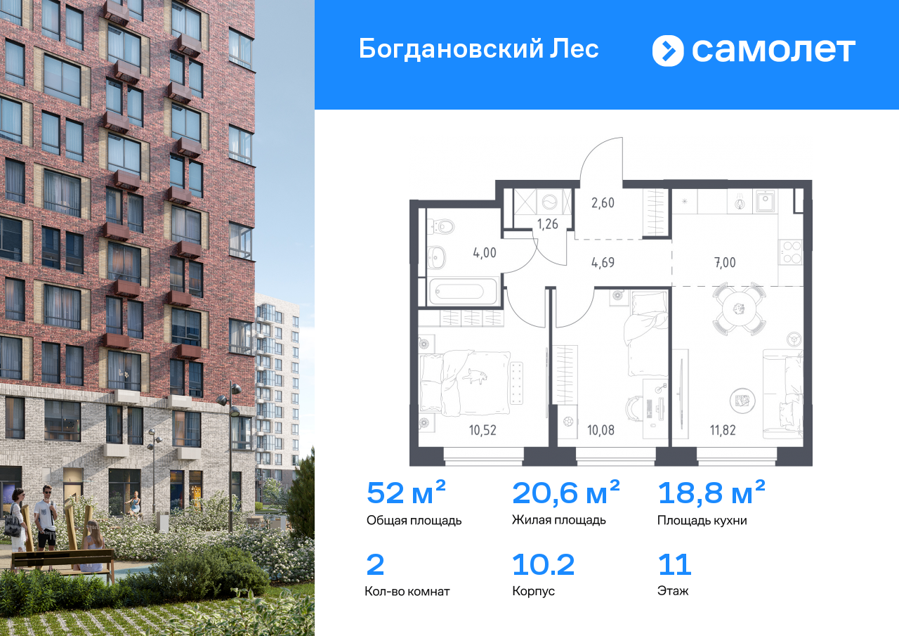 Евро двухкомнатные квартиры в ЖК Богдановский Лес