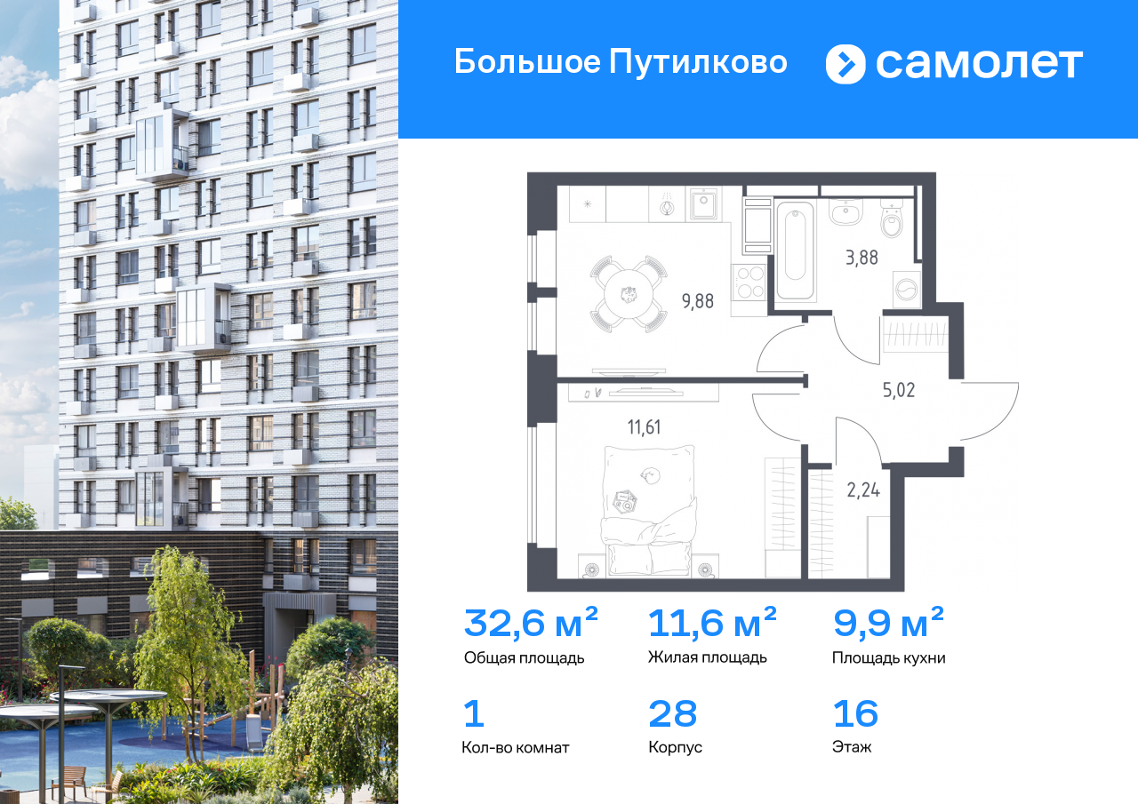 Практически на границе с Москвой, в Красногорском городском округе МО возводится современный жилой район комфорт-класса «Большое Путилково». Он состоит из монолитно-кирпичных зданий переменной высотности от 9 до 25 этажей. Фасады утеплены минватой и отделаны облицовочным кирпичом. В продаже студии, а также одно-, двух- и трехкомнатные квартиры, которые сдаются как с отделкой, так и без нее.
