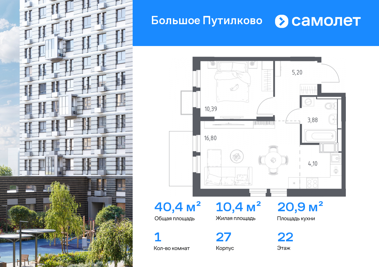 Практически на границе с Москвой, в Красногорском городском округе МО возводится современный жилой район комфорт-класса «Большое Путилково». Он состоит из монолитно-кирпичных зданий переменной высотности от 9 до 25 этажей. Фасады утеплены минватой и отделаны облицовочным кирпичом. В продаже студии, а также одно-, двух- и трехкомнатные квартиры, которые сдаются как с отделкой, так и без нее.