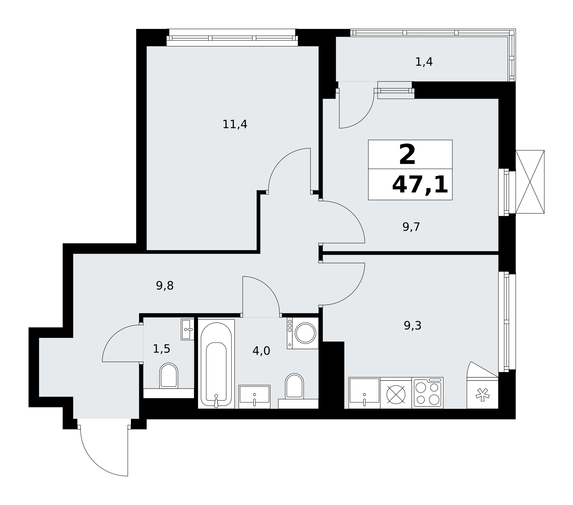 2-комнатная (47.1м2)